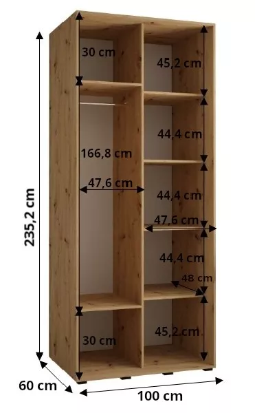 Úzká šatní skříň se zrcadlem ASIRI zaujme svým moderním designem a praktickými prvky. Skříň má posuvné dveře, které se neotvírají do prostoru a ušetří tak spoustu místa.