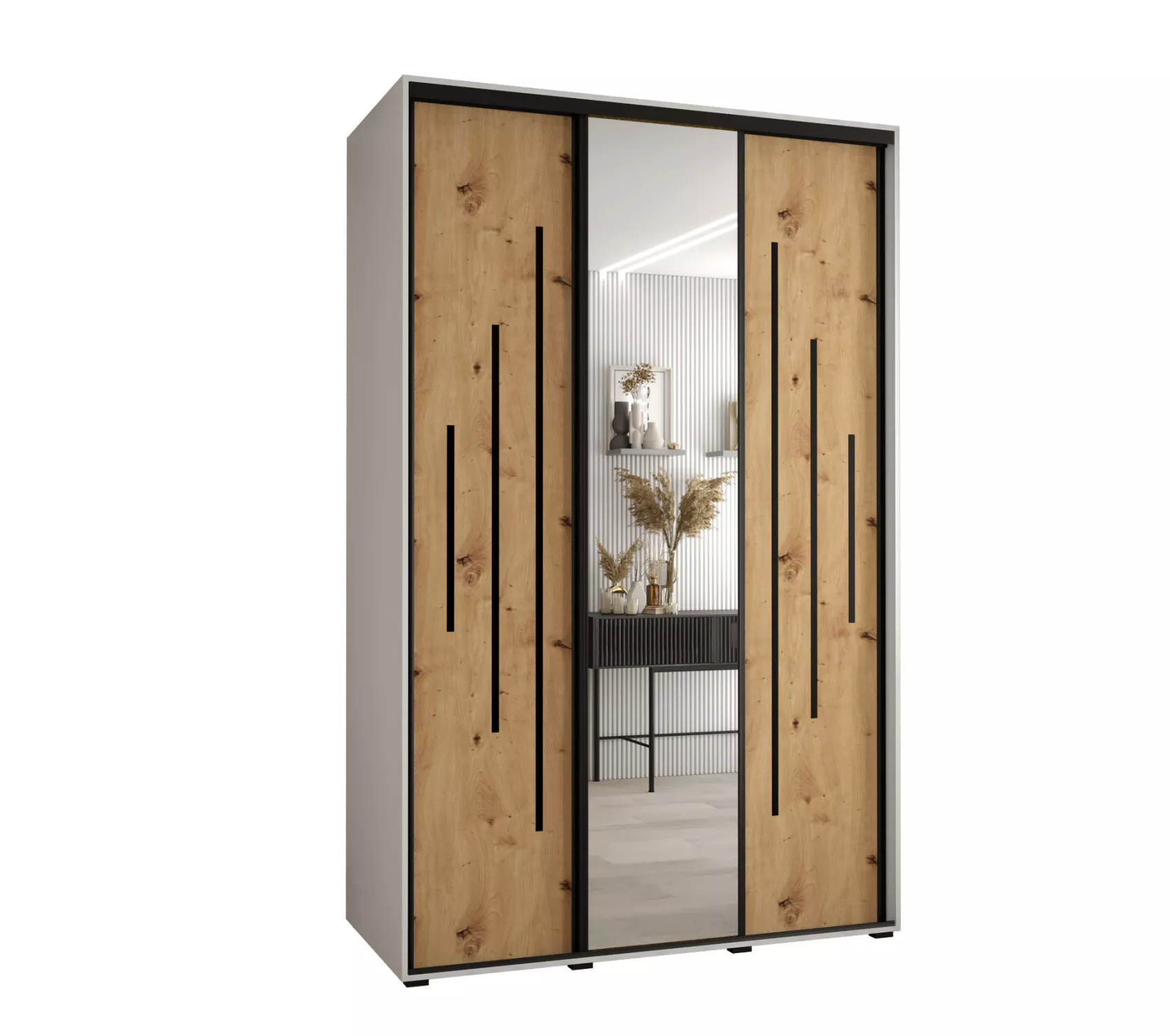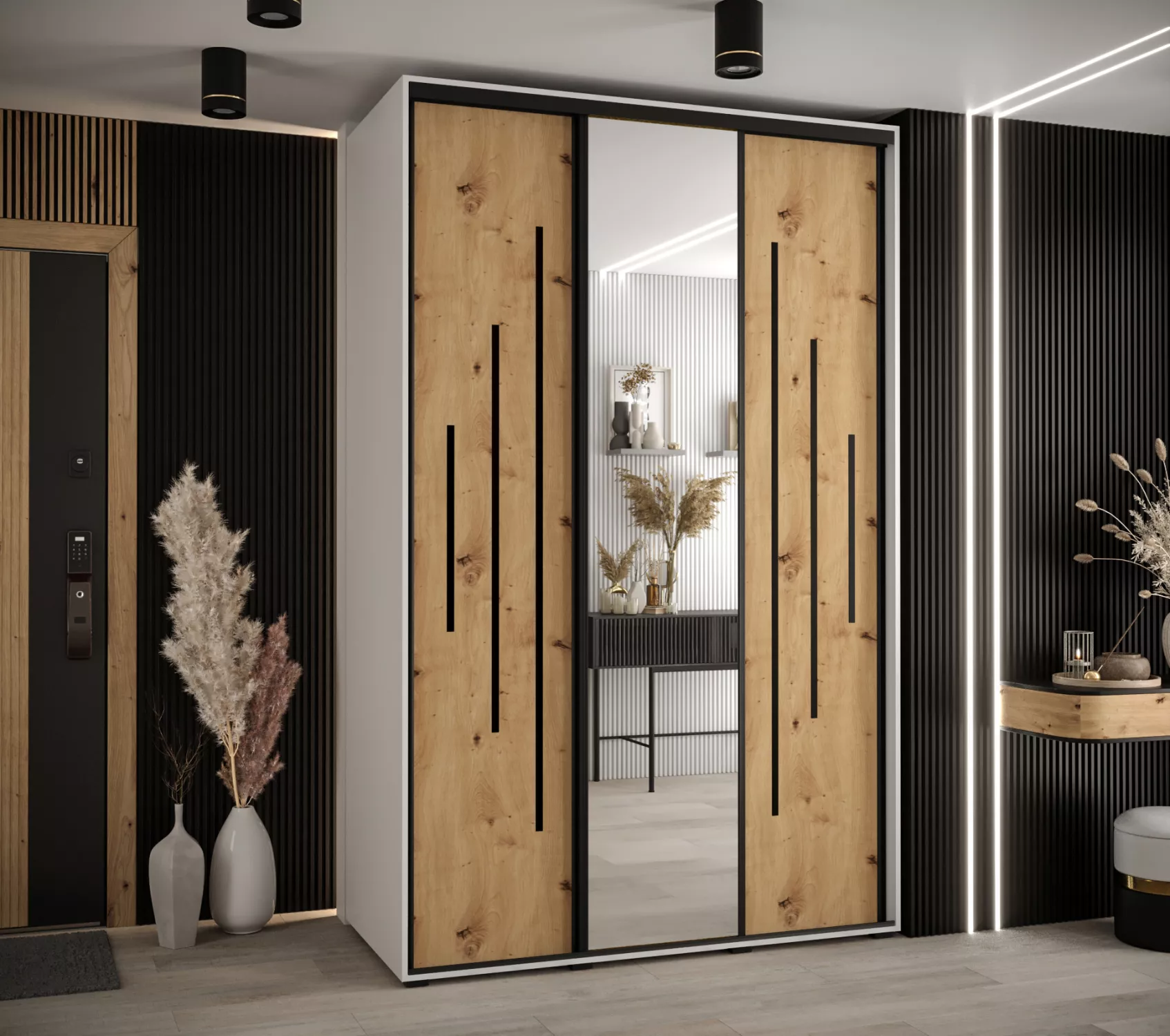 Šatní skříň ASIRI 13 - 160/60 cm, bílá / dub artisan / černá