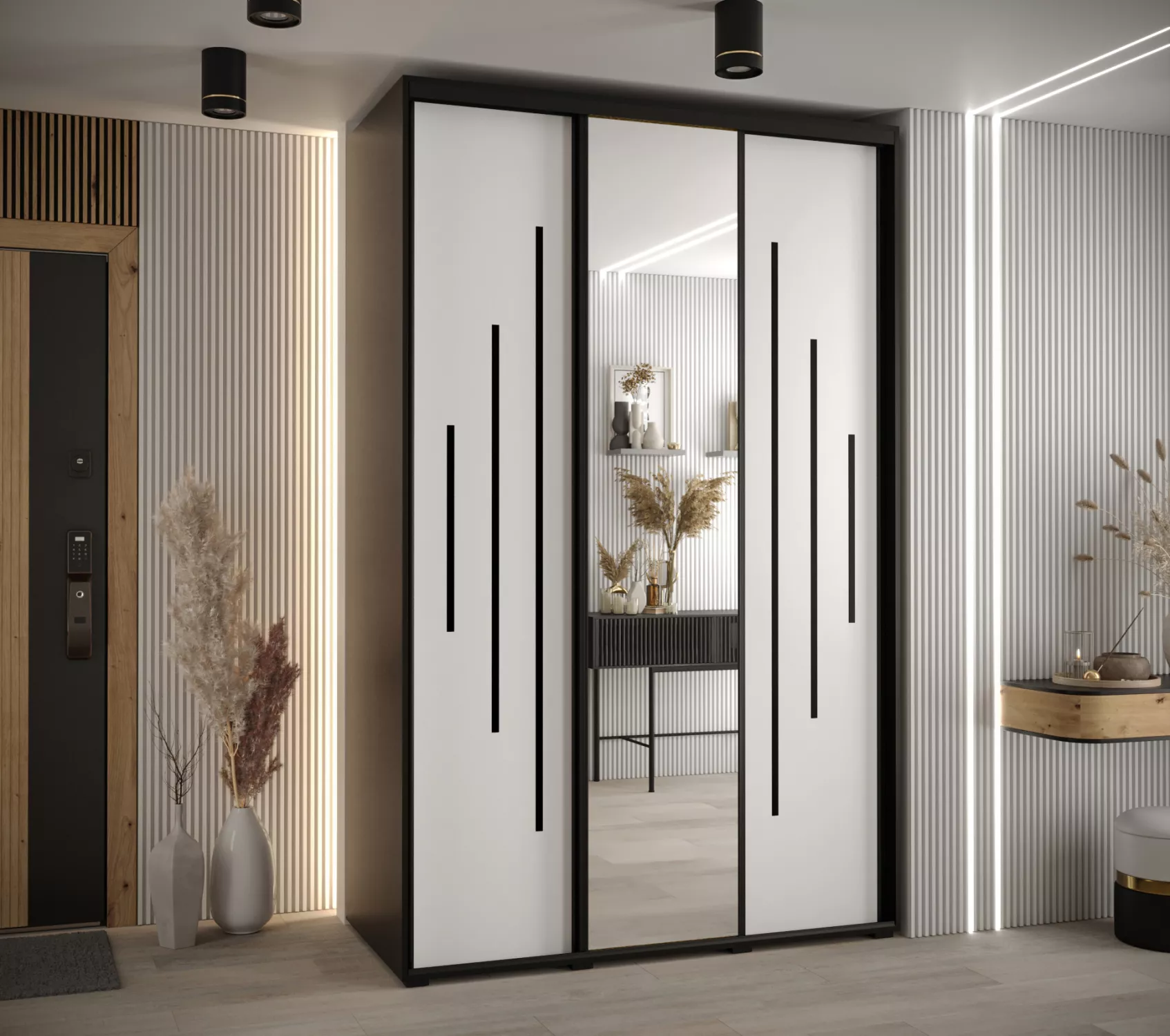 Šatní skříň ASIRI 13 - 160/60 cm, černá / bílá / černá