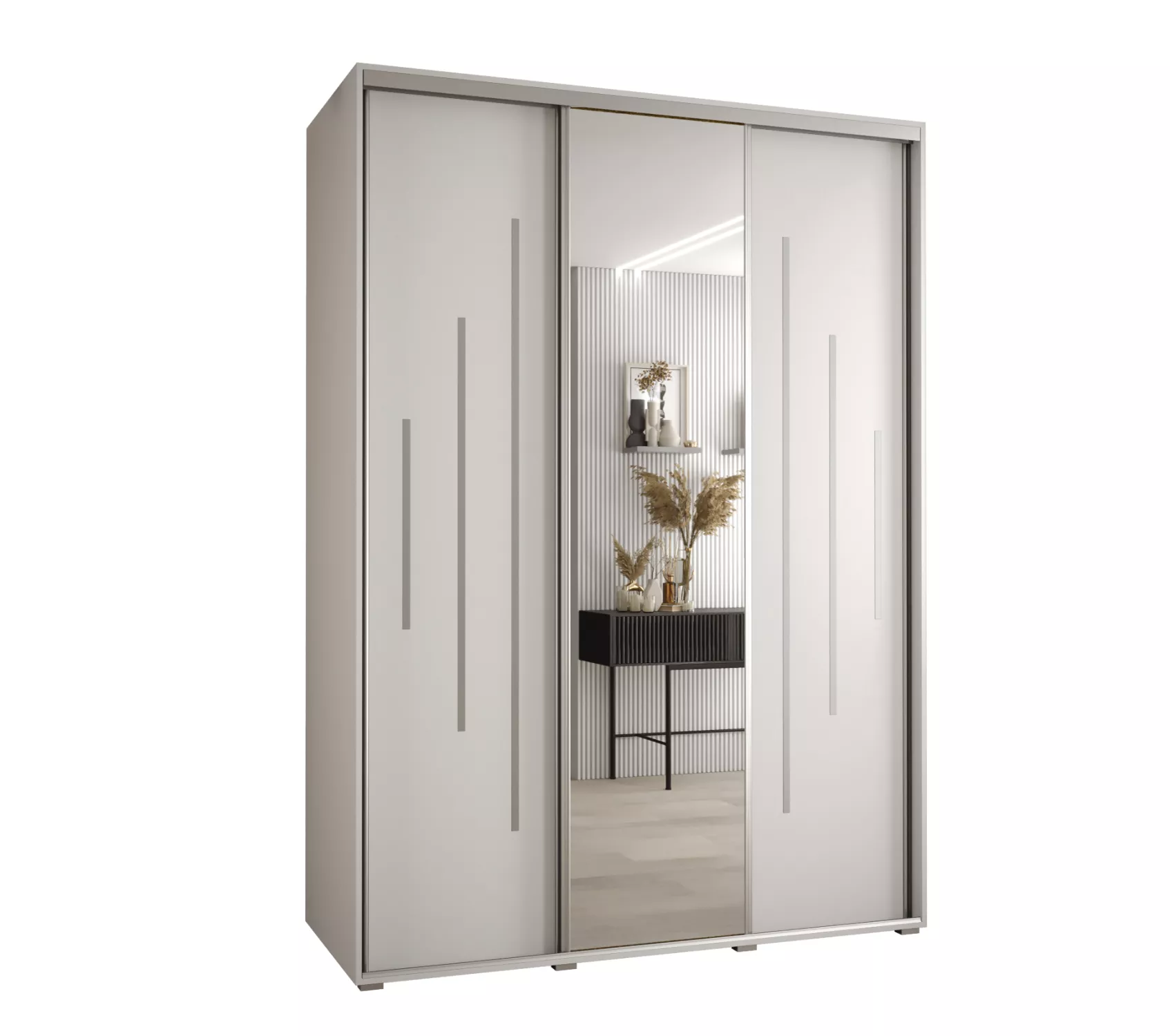 Velká šatní skříň se zrcadlem ASIRI zaujme svým moderním designem a praktickými prvky. Skříň má posuvné dveře, které se neotvírají do prostoru a ušetří tak spoustu místa. Vnitřek skříně lze uspořádat dle vašich potřeb.