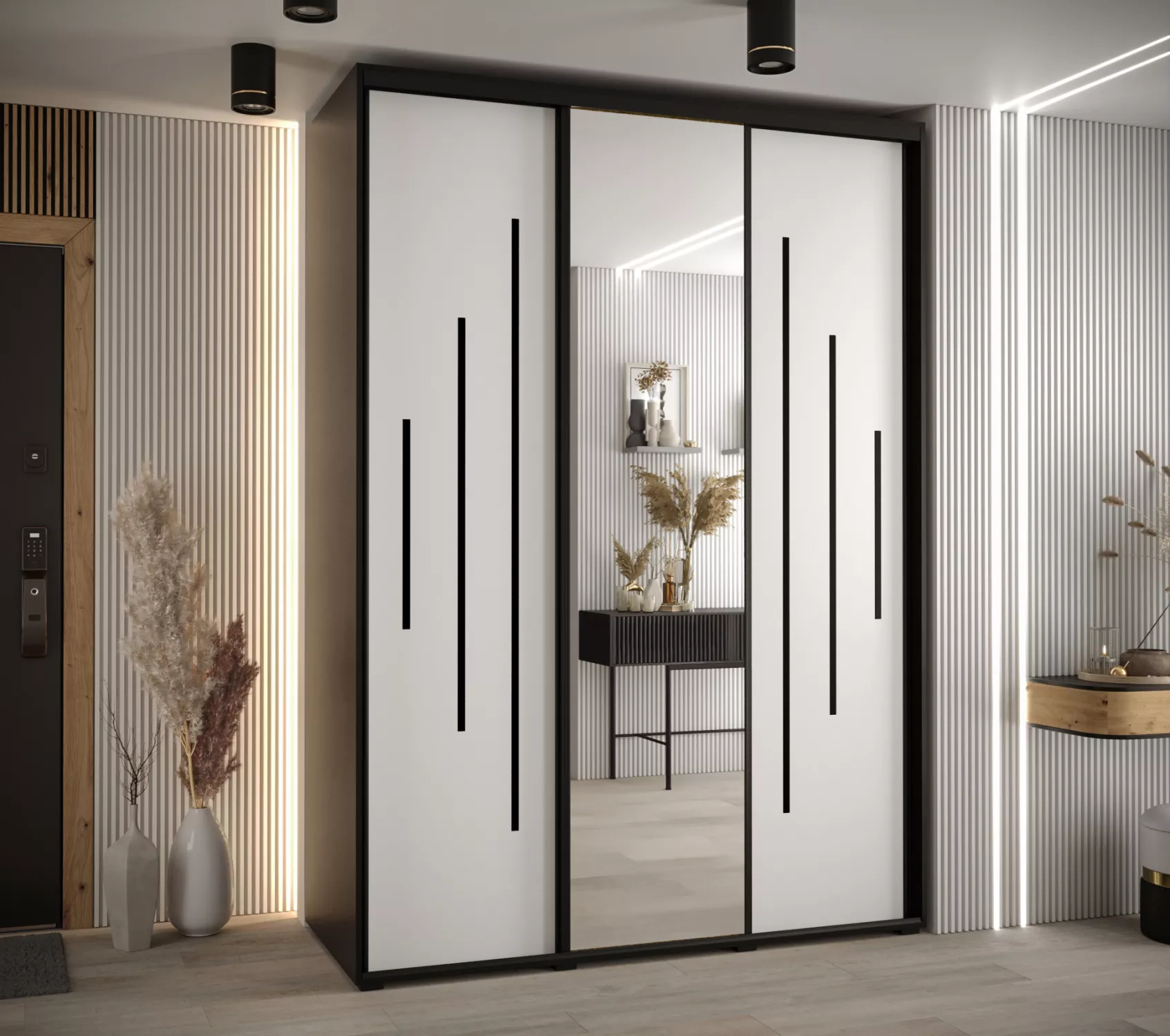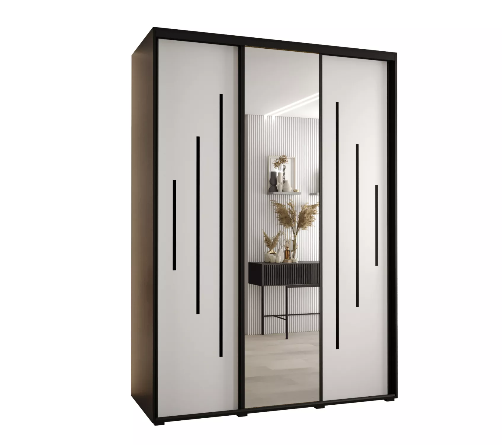 Velká šatní skříň se zrcadlem ASIRI zaujme svým moderním designem a praktickými prvky. Skříň má posuvné dveře, které se neotvírají do prostoru a ušetří tak spoustu místa. Vnitřek skříně lze uspořádat dle vašich potřeb.