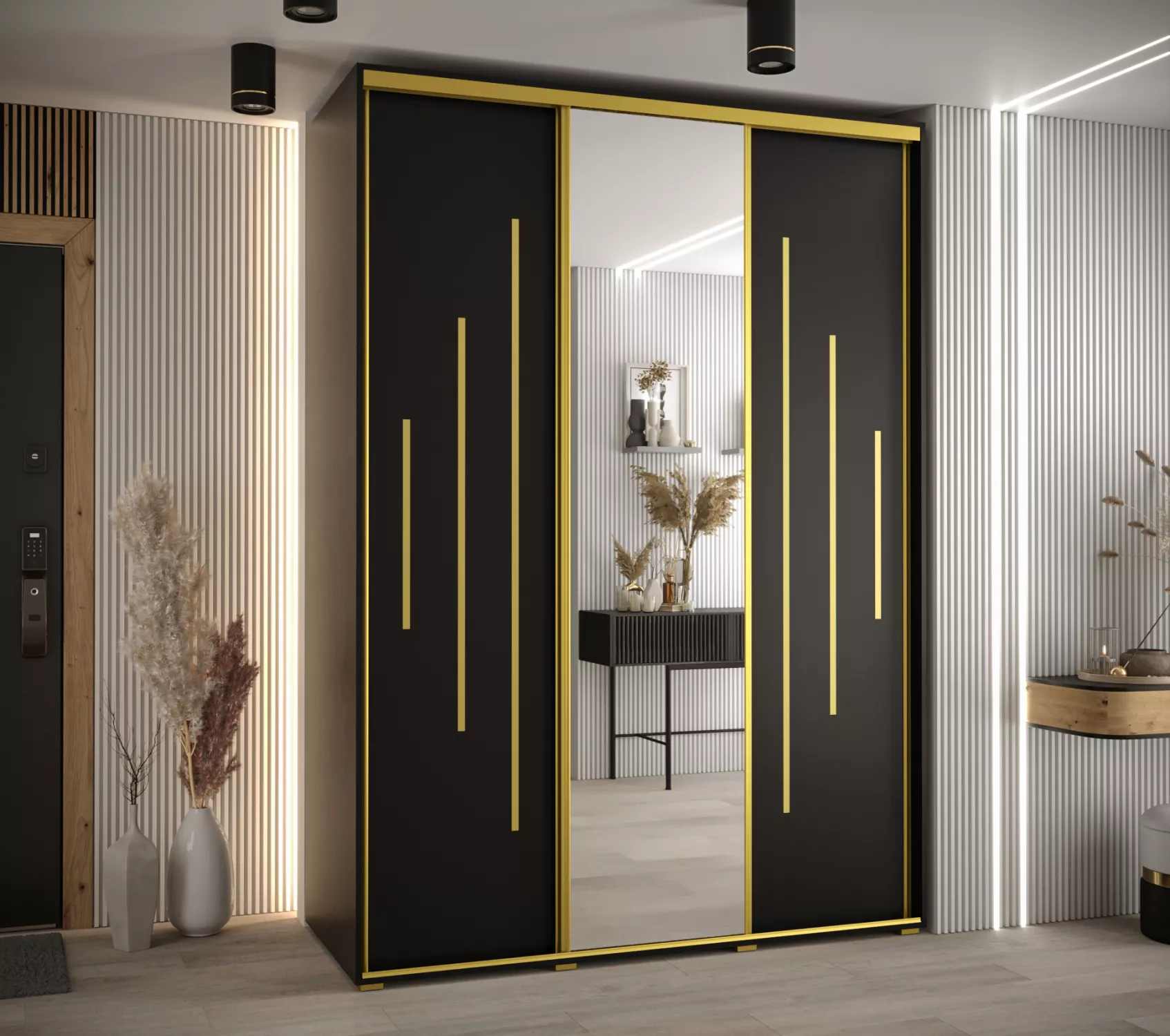 Šatní skříň ASIRI 13 - 180/60 cm, černá / zlatá