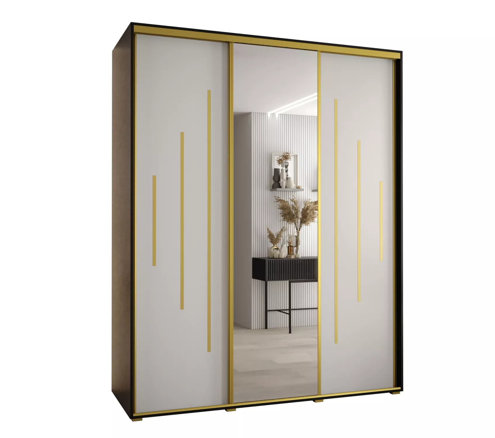 Šatní skříň ASIRI 13 - 200/60 cm, černá / bílá / zlatá
