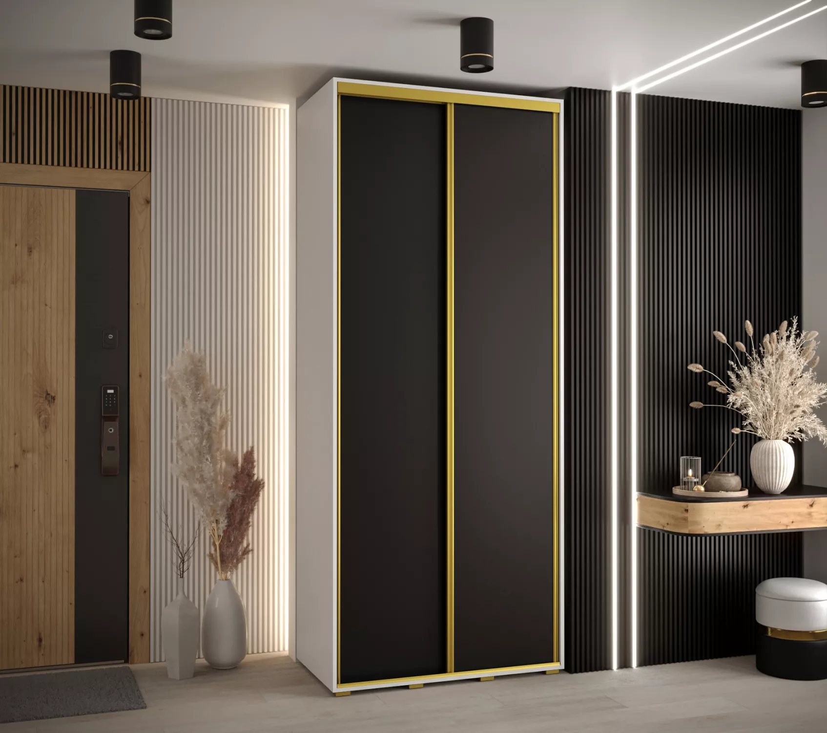 Šatní skříň YVONA 1 - 100/45 cm, bílá / černá / zlatá