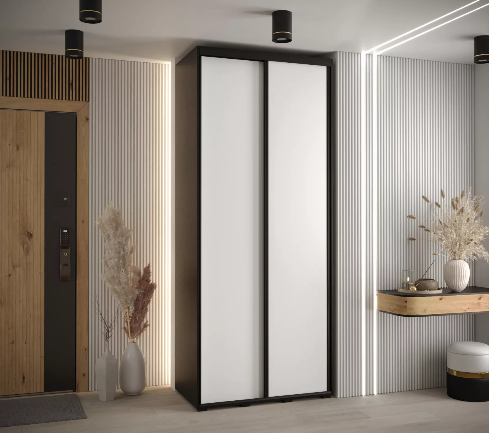 Šatní skříň YVONA 1 - 110/45 cm, černá / bílá / černá