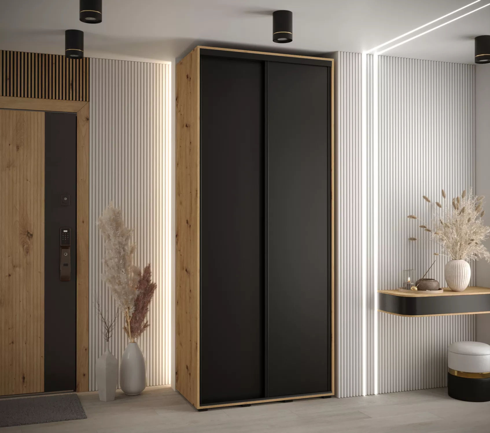 Šatní skříň YVONA 1 - 120/45 cm, dub artisan / černá / černá