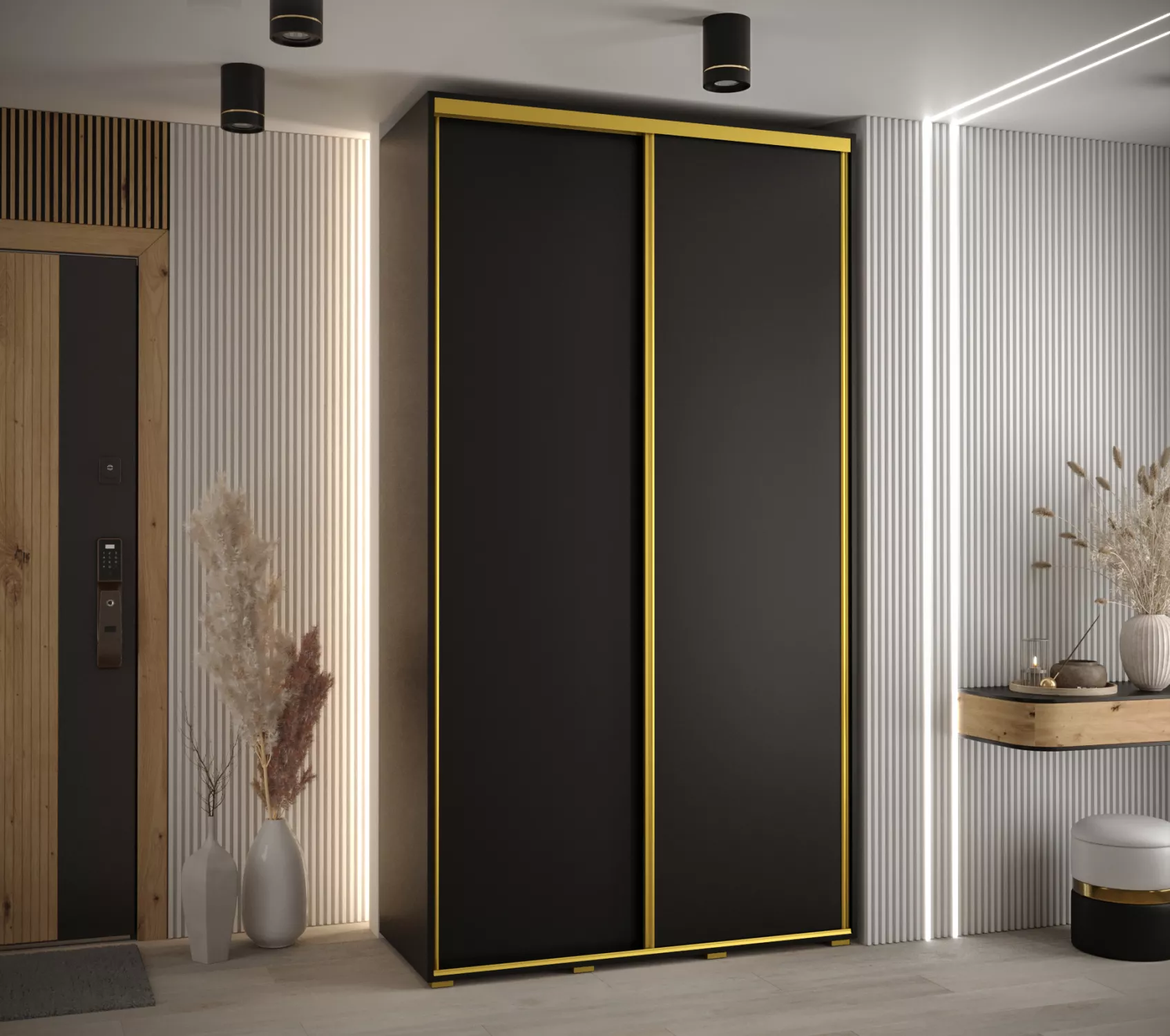 Šatní skříň YVONA 1 - 130/45 cm, černá / zlatá