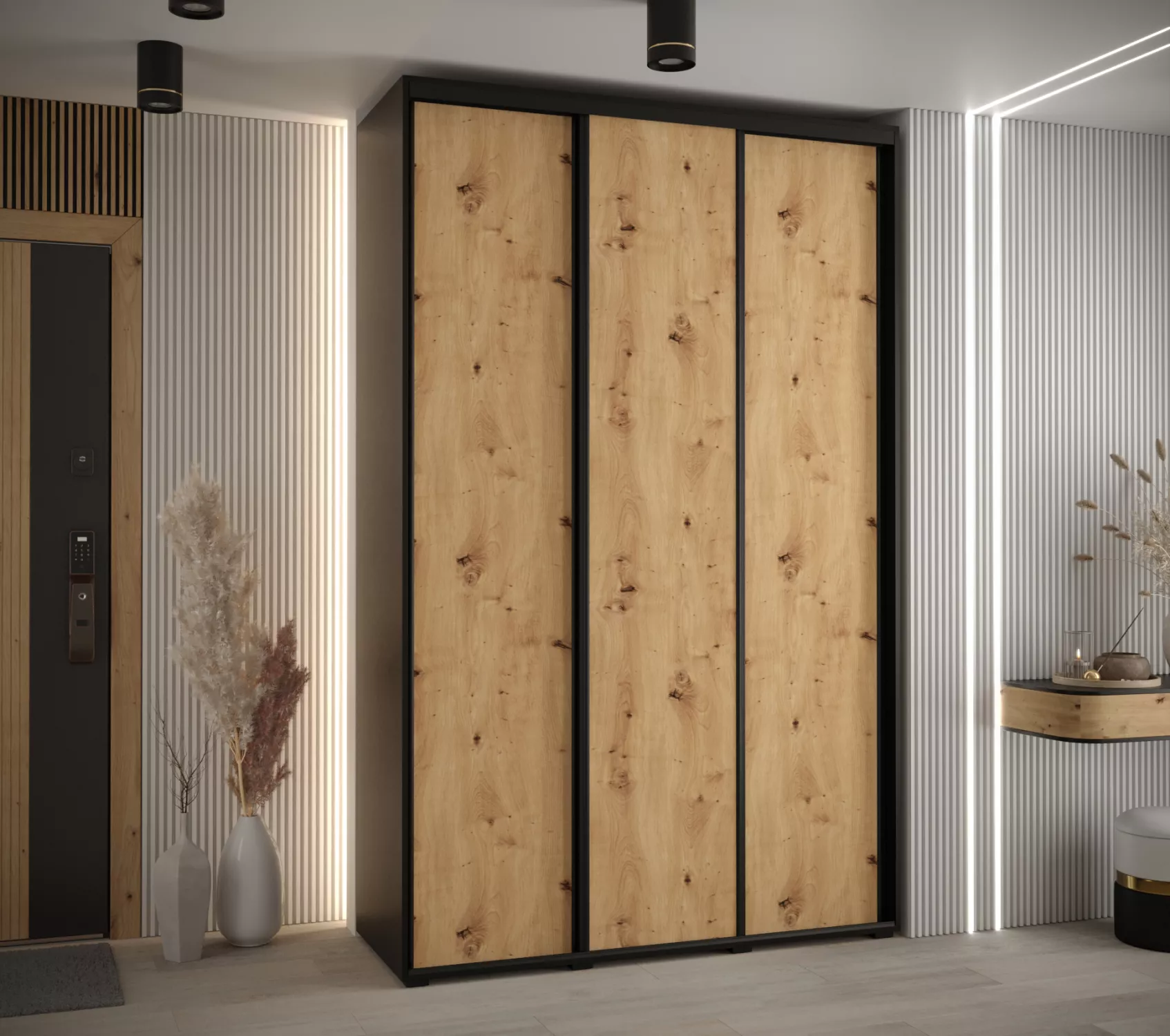 Šatní skříň YVONA 1 - 150/45 cm, černá / dub artisan / černá