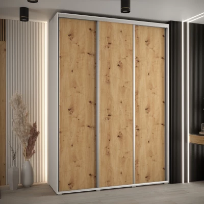 Šatní skříň YVONA 1 - 170/45 cm, bílá / dub artisan / stříbrná