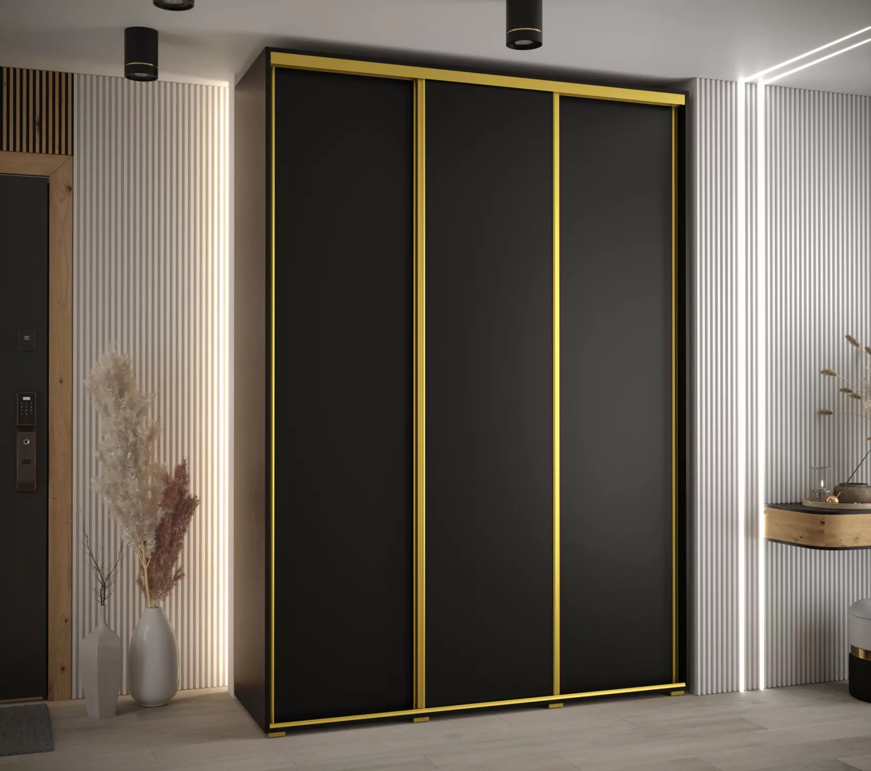 Šatní skříň YVONA 1 - 170/45 cm, černá / zlatá