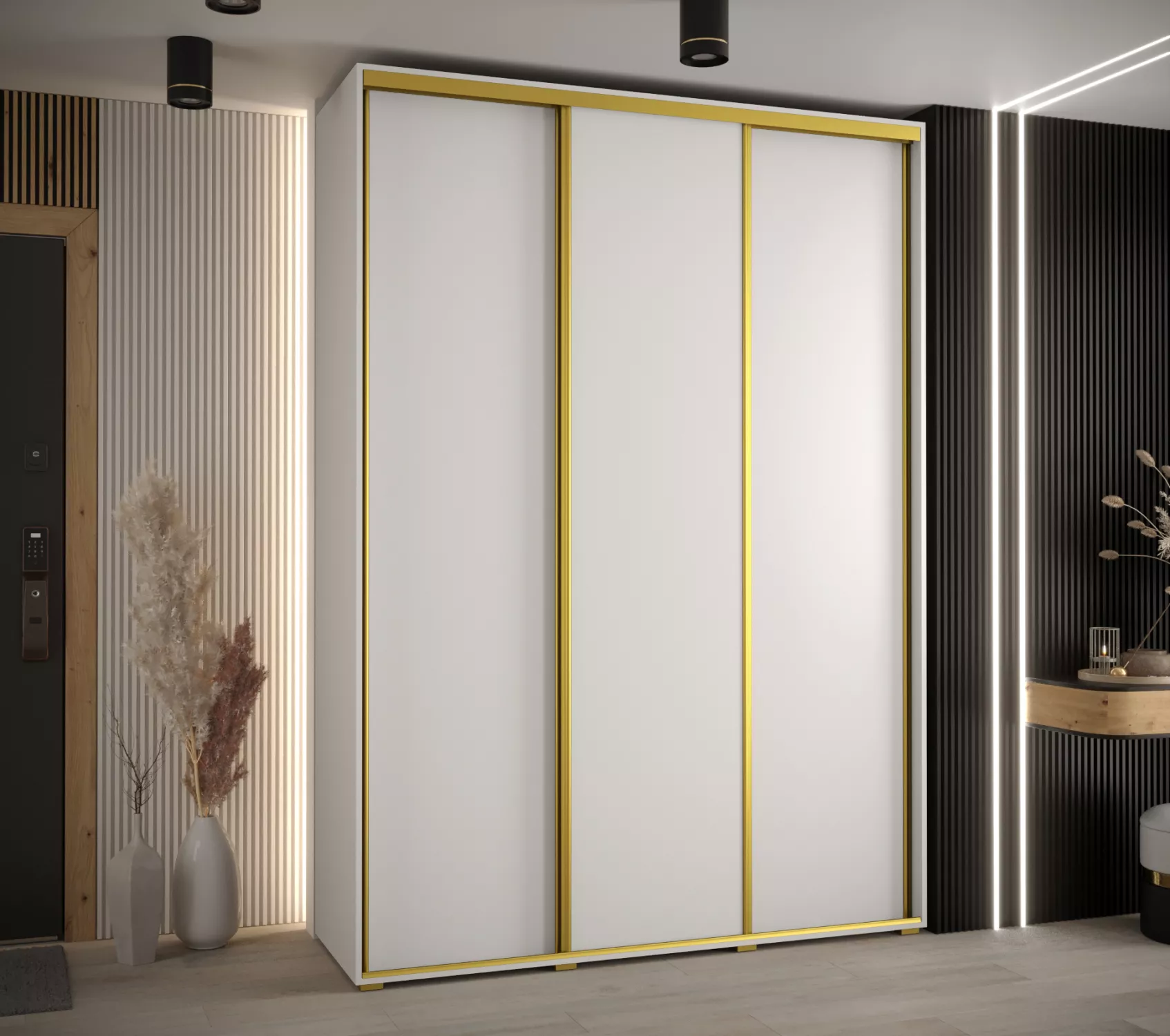Šatní skříň YVONA 1 - 180/45 cm, bílá / zlatá