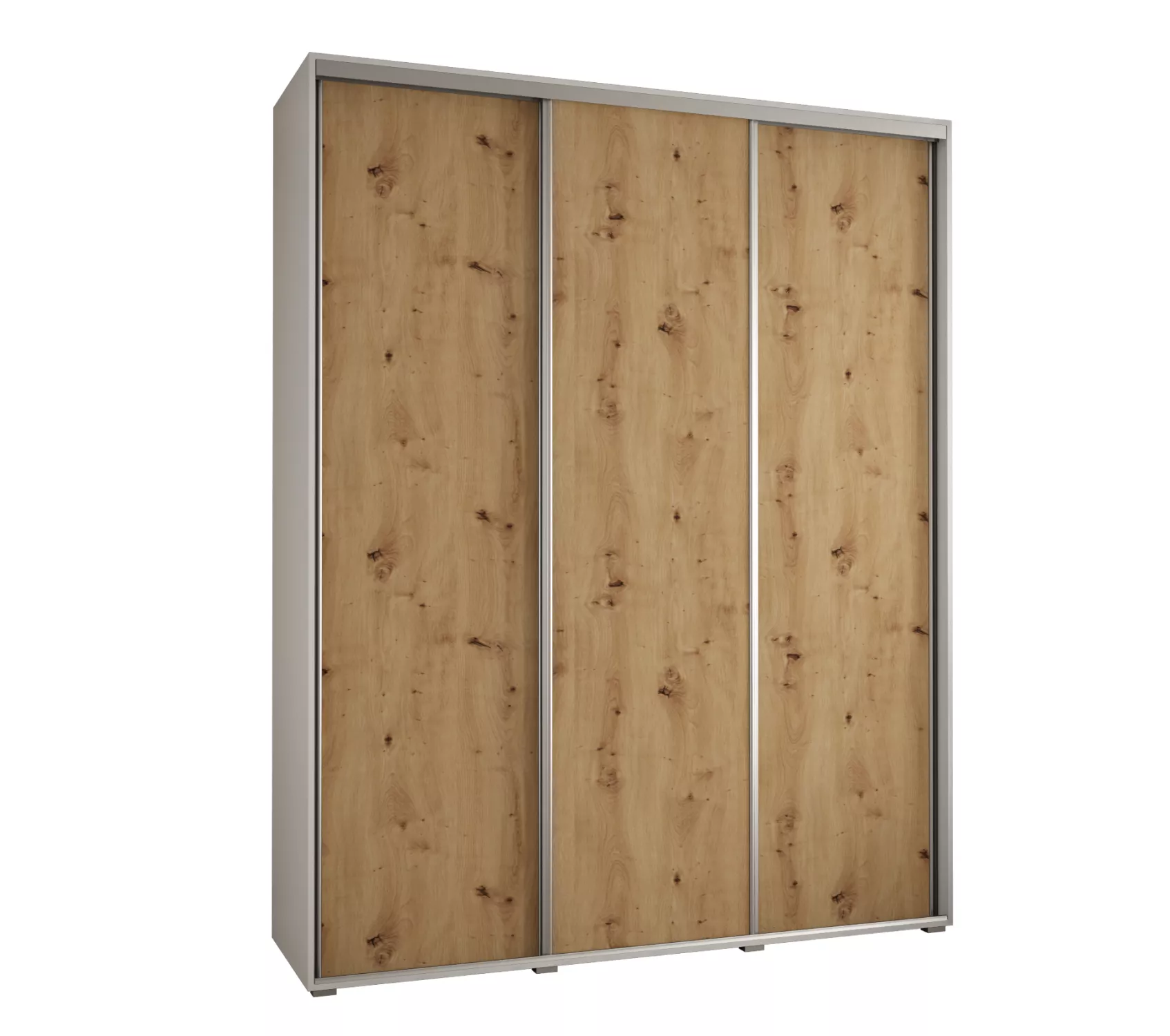 Šatní skříň YVONA 1 - 190/45 cm, bílá / dub artisan / stříbrná