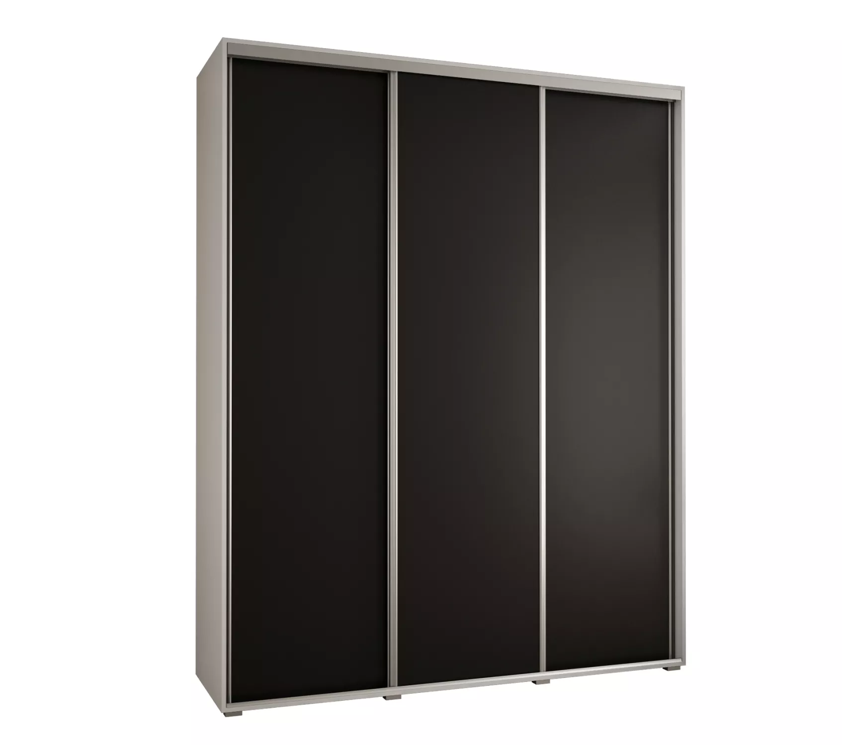 Šatní skříň YVONA 1 - 190/45 cm, bílá / černá / stříbrná