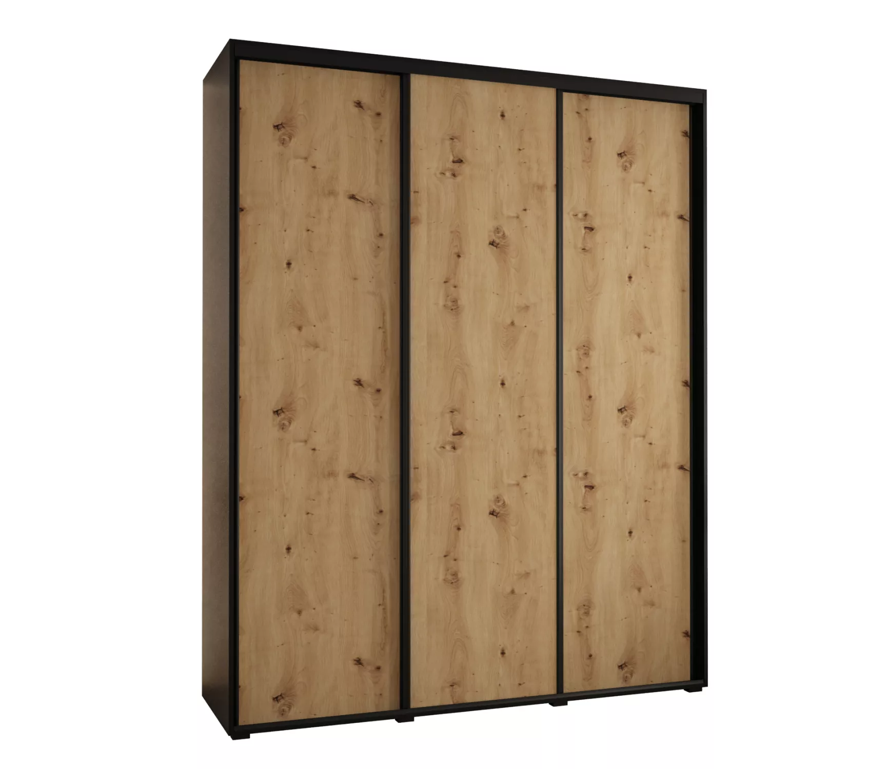 Šatní skříň YVONA 1 - 190/45 cm, černá / dub artisan / černá