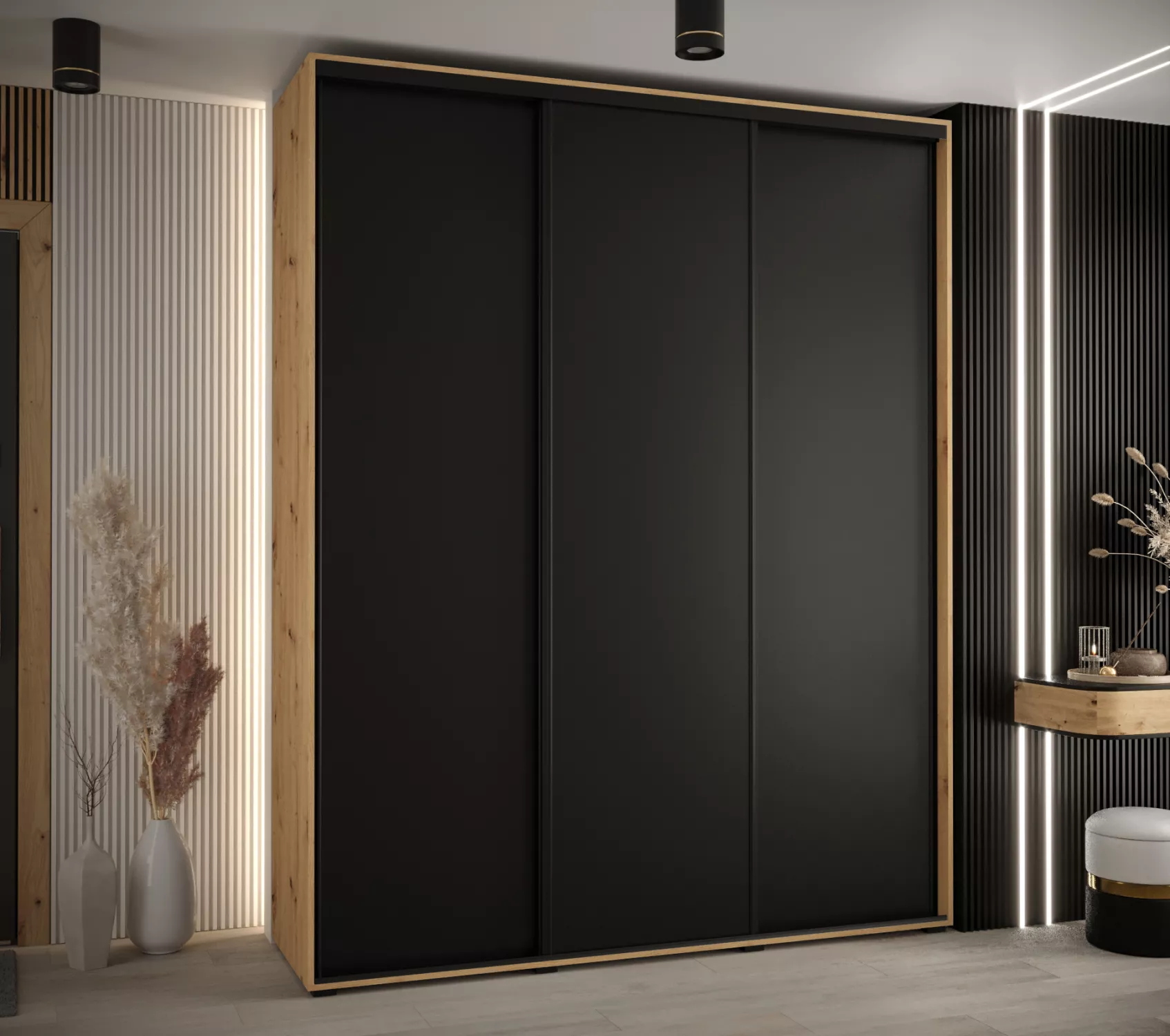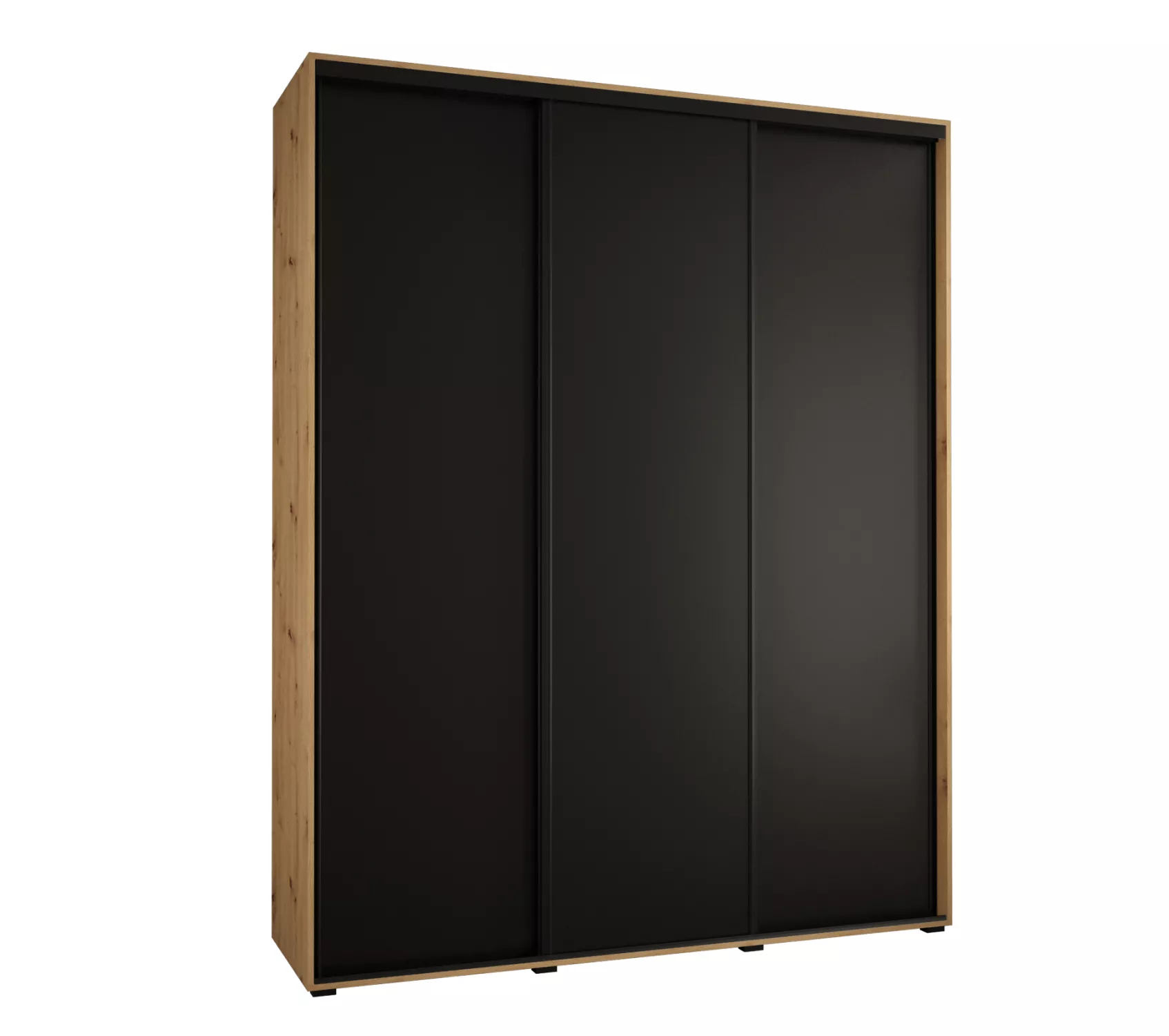 Šatní skříň YVONA 1 - 200/45 cm, dub artisan / černá / černá