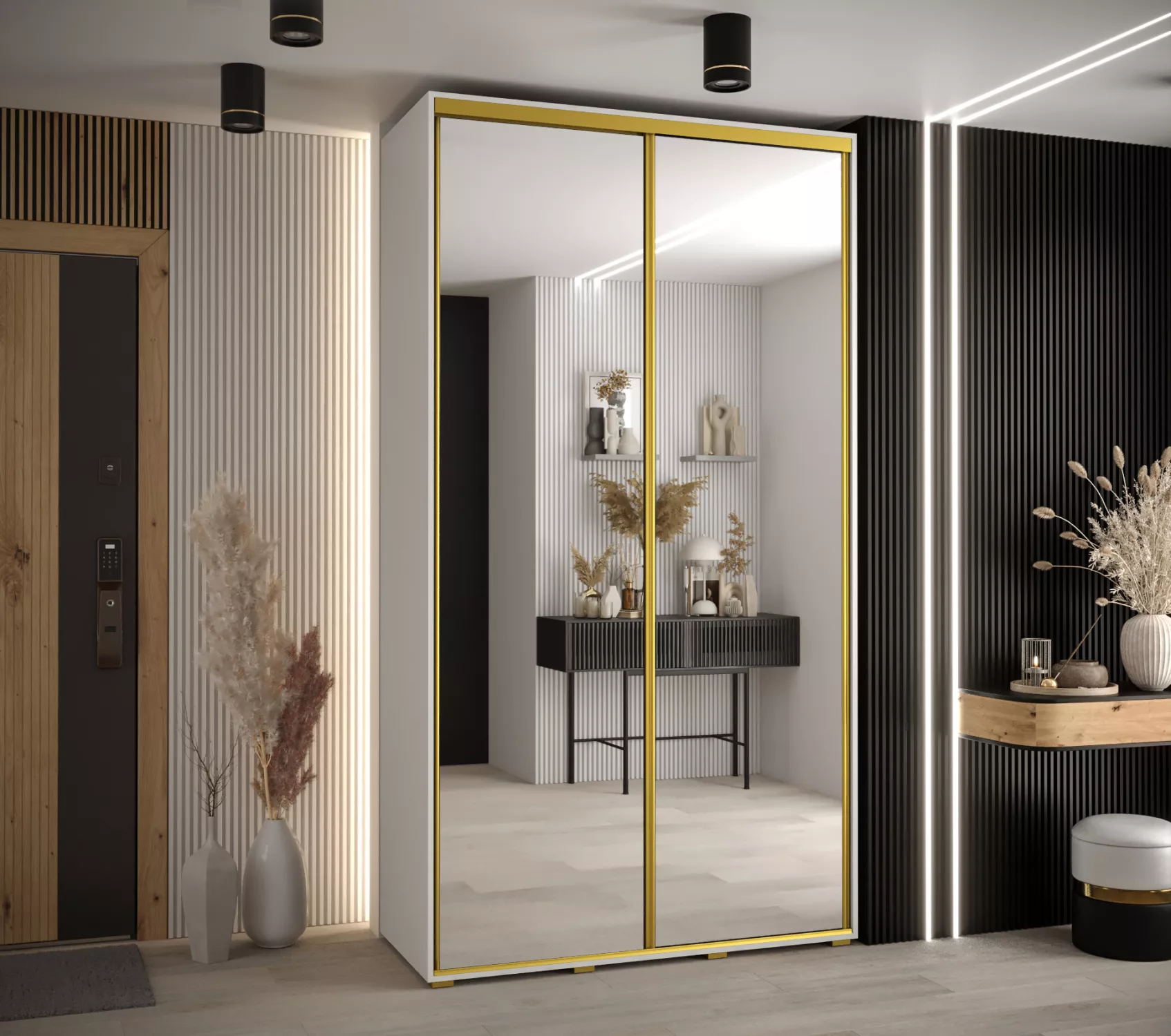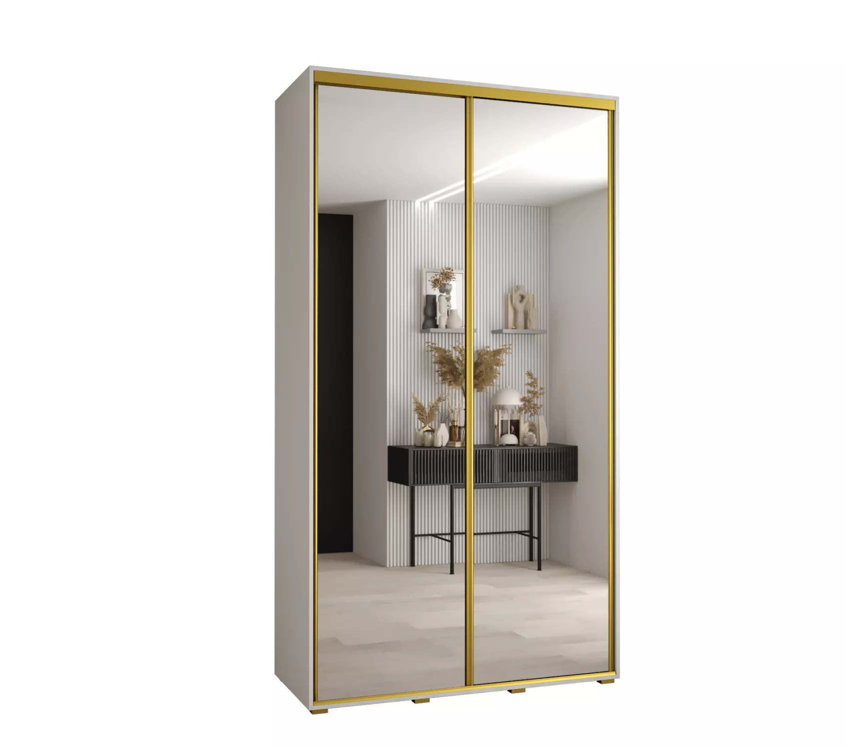 Šatní skříň YVONA 2 - 130/45 cm, bílá / zlatá