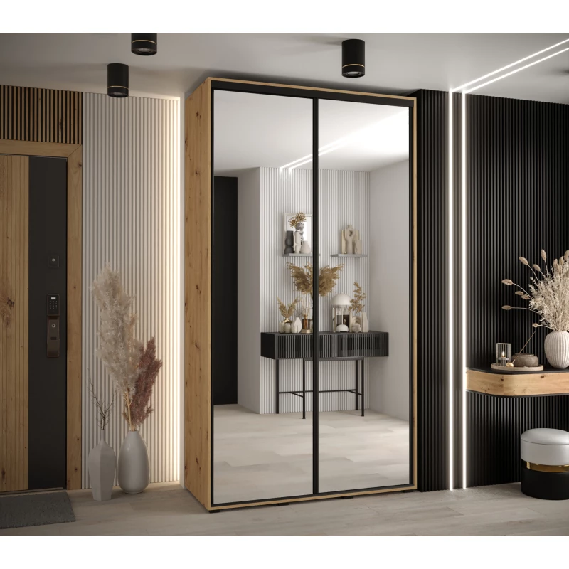 Šatní skříň YVONA 2 - 140/45 cm, dub artisan / černá