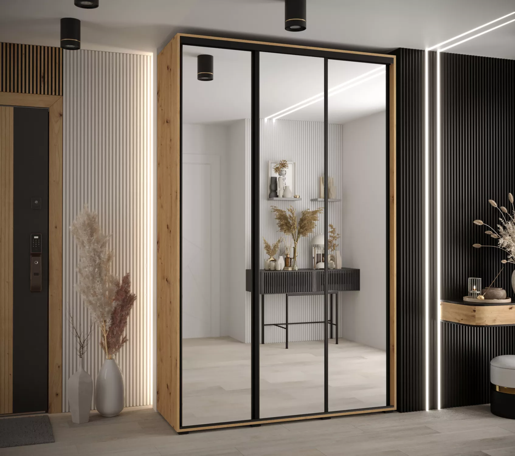 Šatní skříň YVONA 2 - 150/45 cm, dub artisan / černá