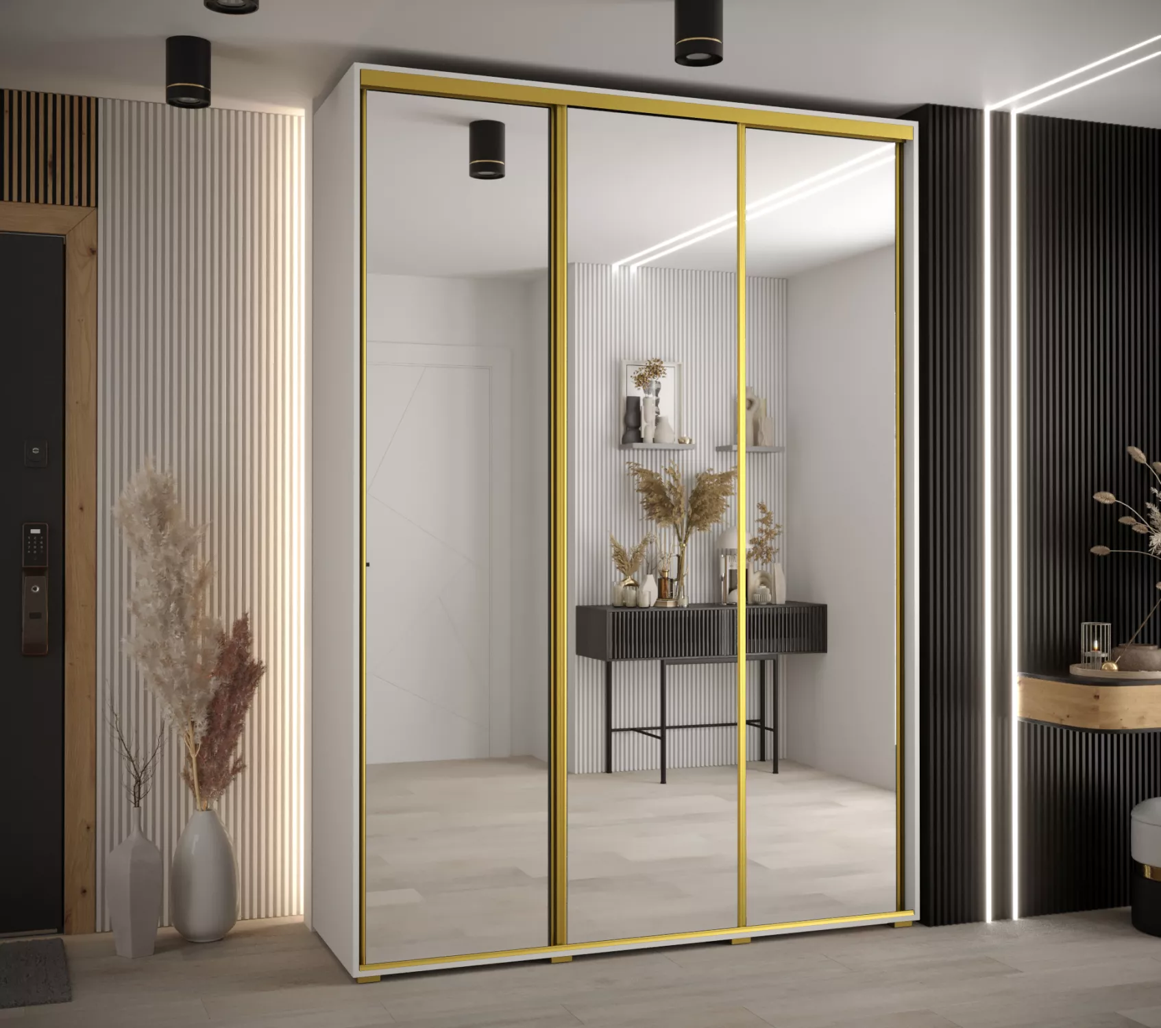 Šatní skříň YVONA 2 - 180/45 cm, bílá / zlatá