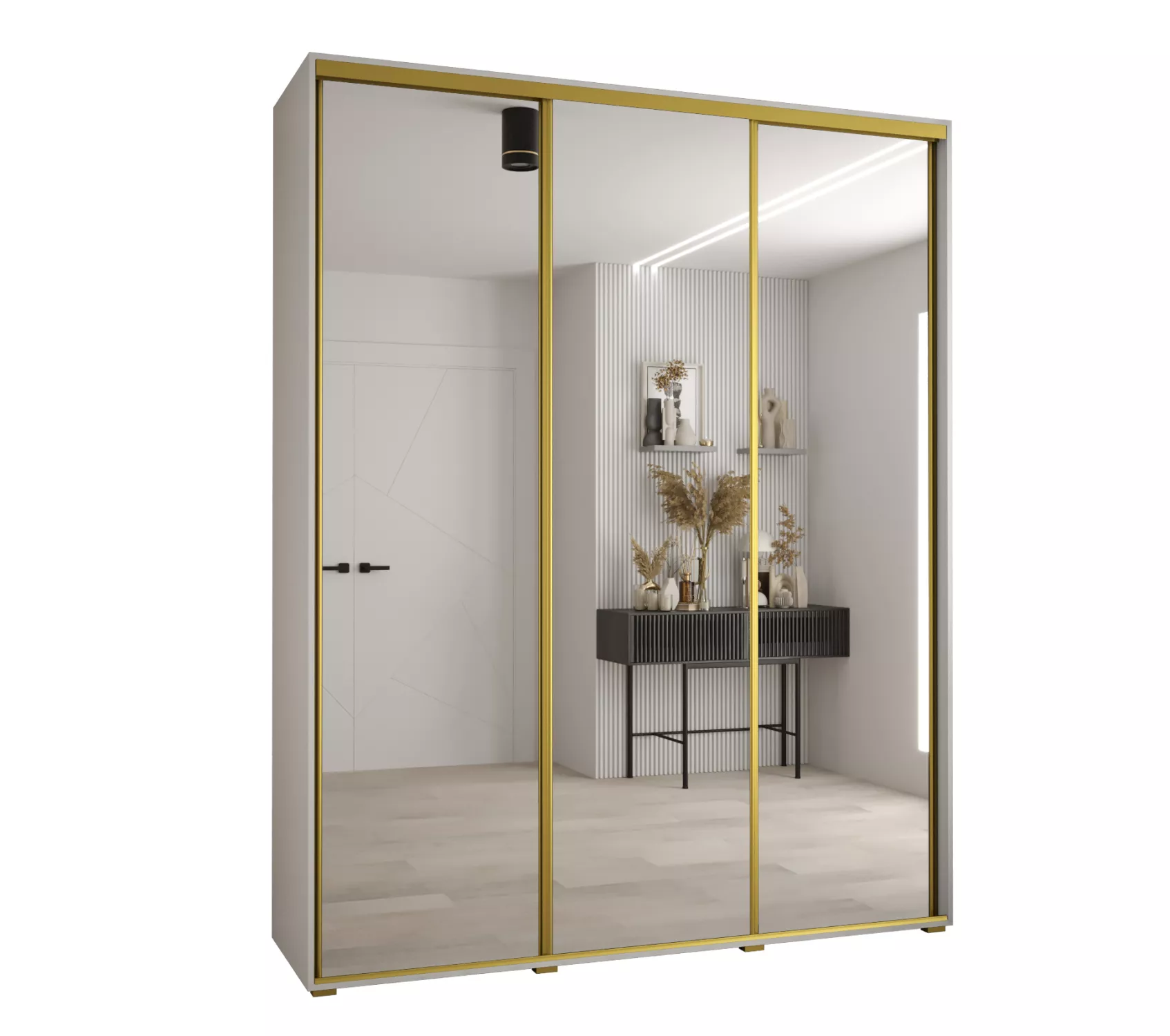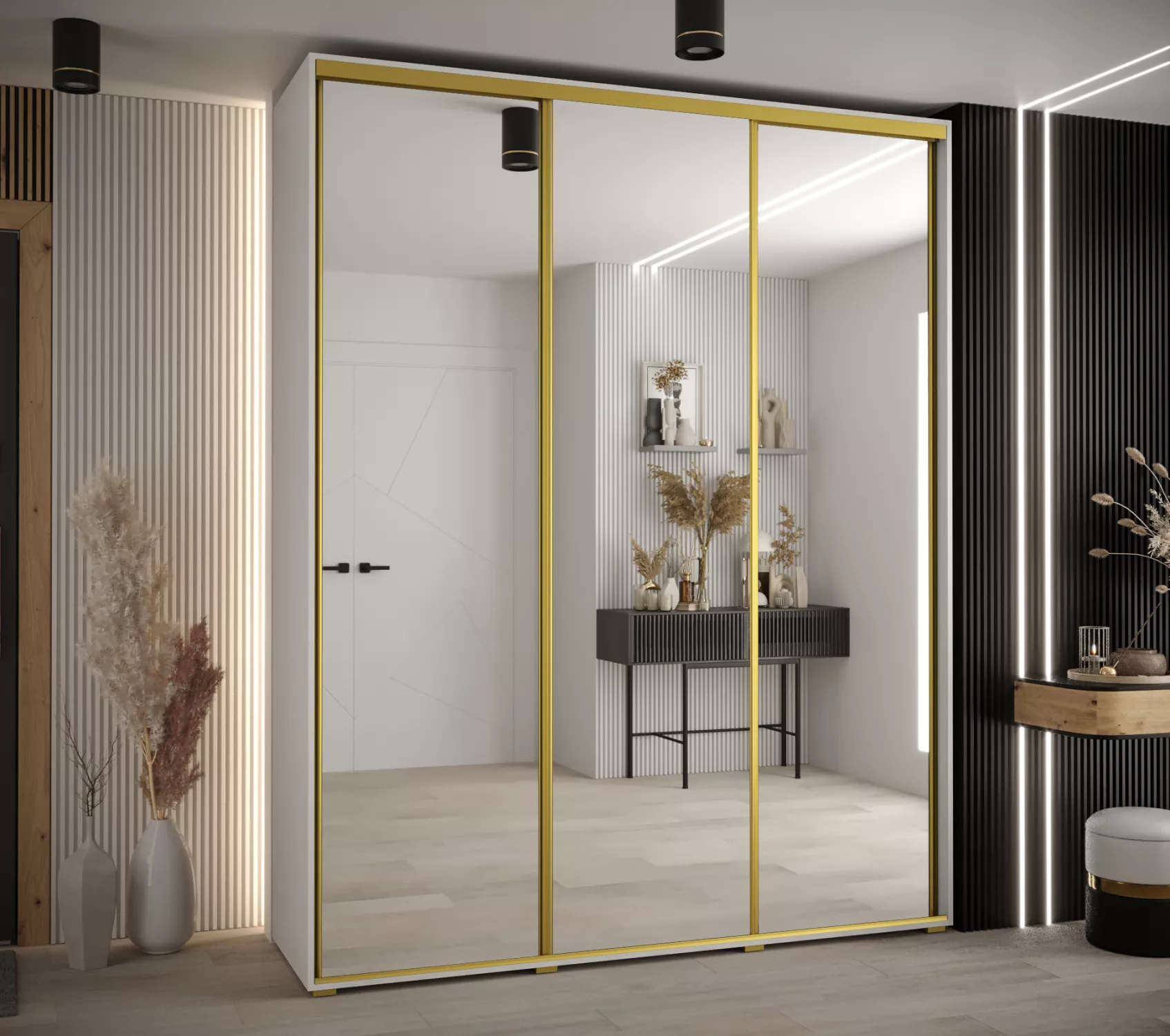 Šatní skříň YVONA 2 - 200/45 cm, bílá / zlatá