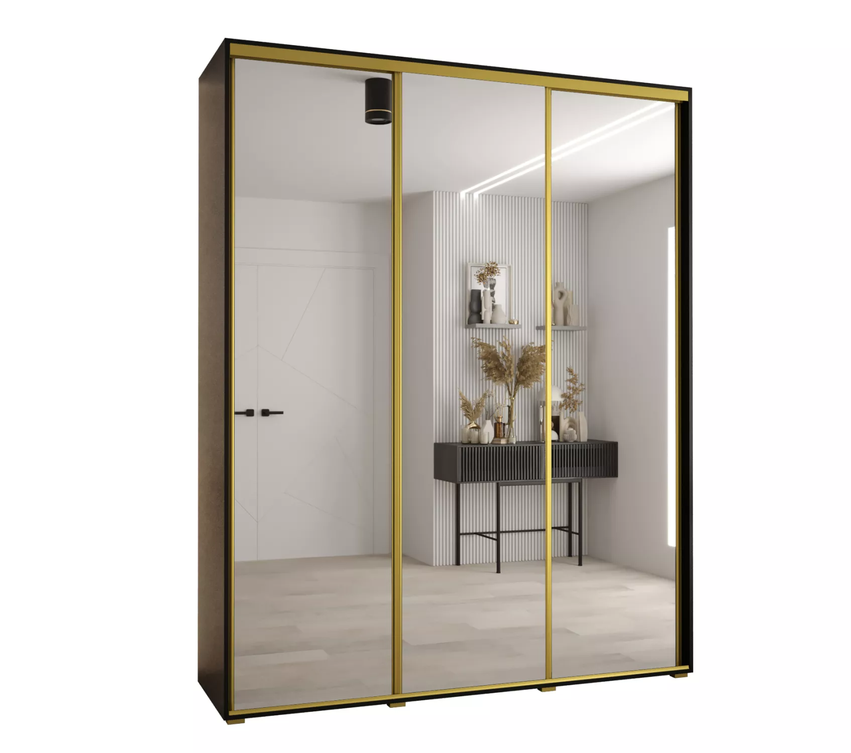 Šatní skříň YVONA 2 - 200/45 cm, černá / zlatá