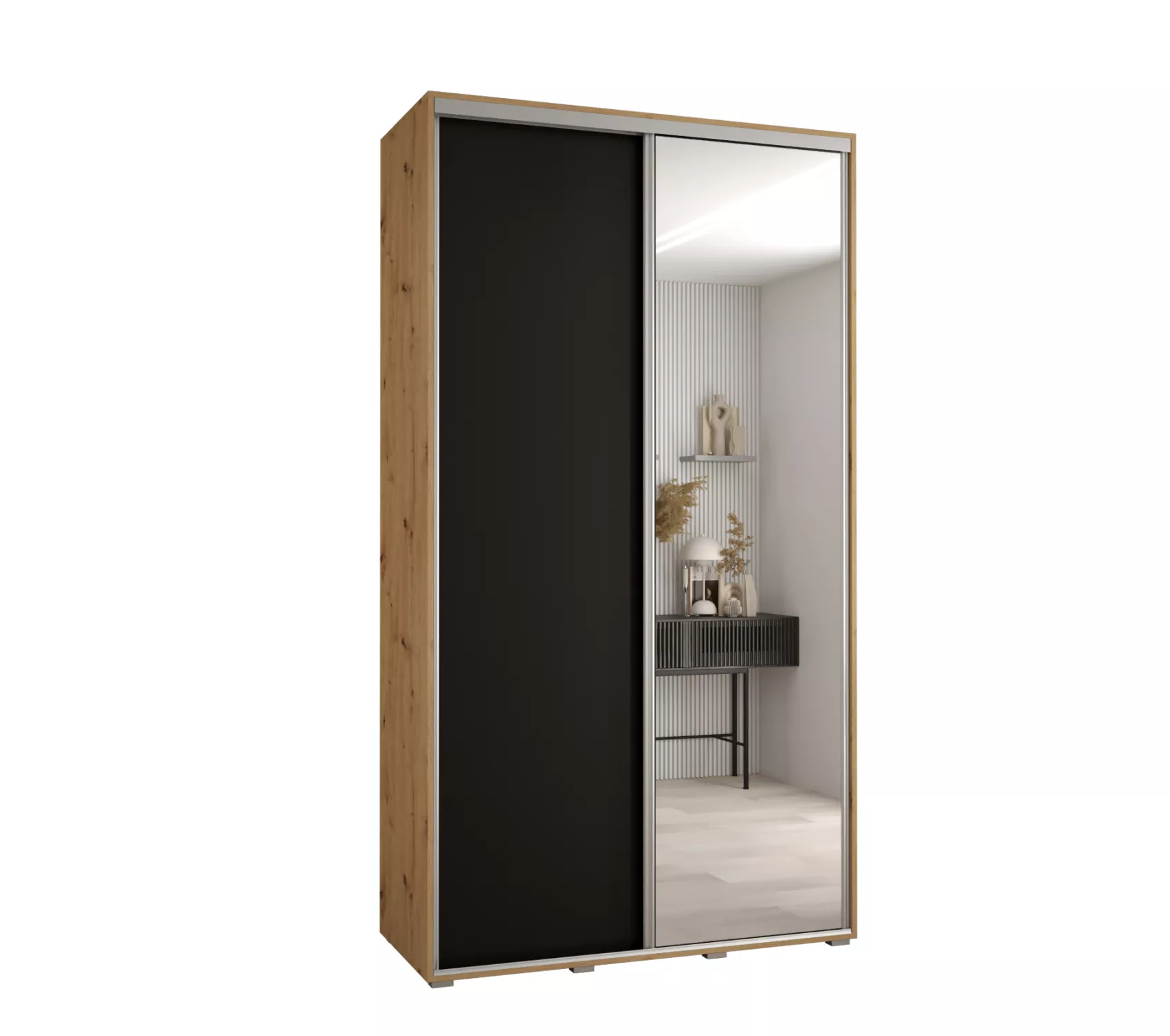 Šatní skříň YVONA 3 - 130/45 cm, dub artisan / černá / stříbrná