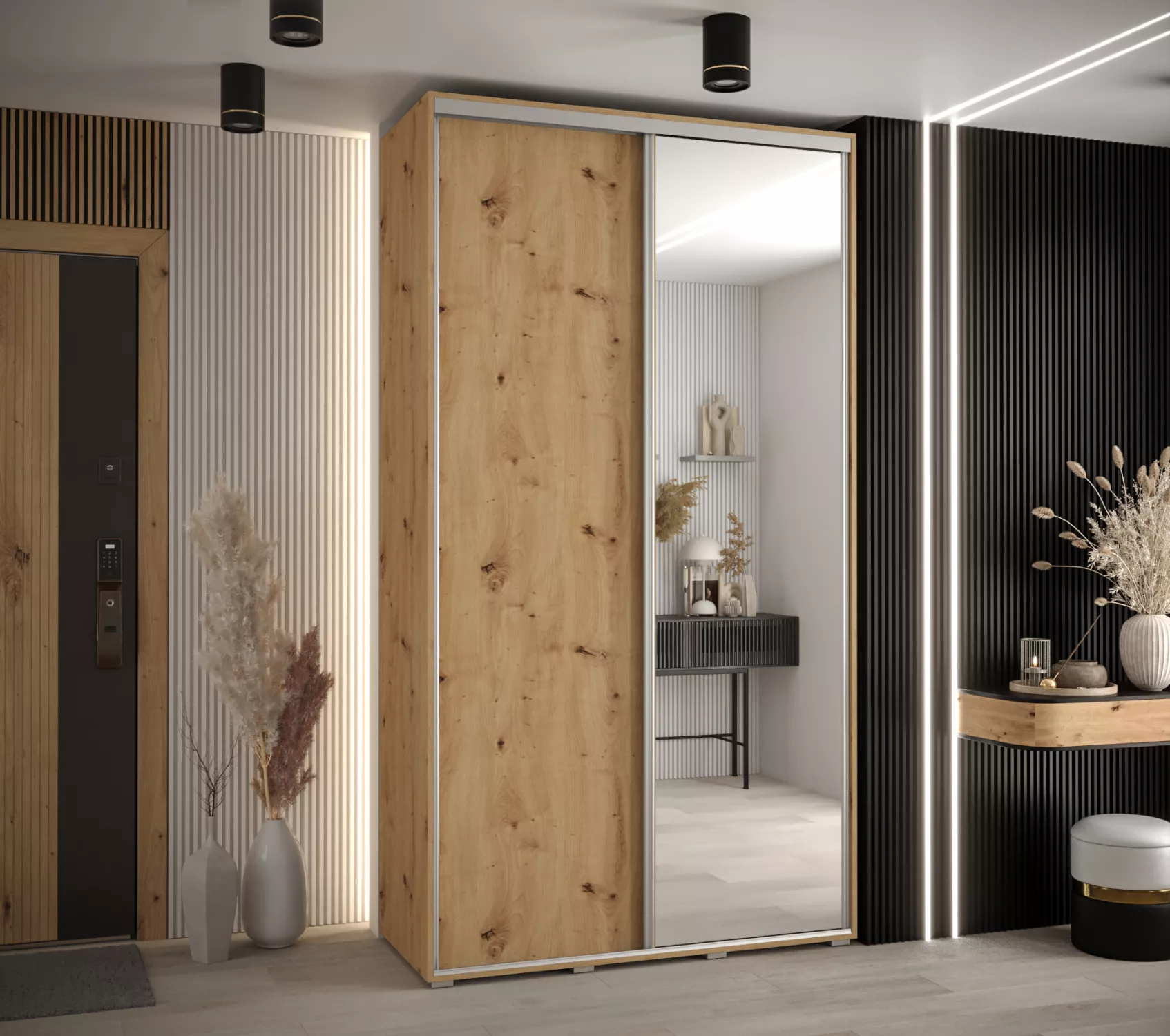 Šatní skříň YVONA 3 - 130/45 cm, dub artisan / stříbrná