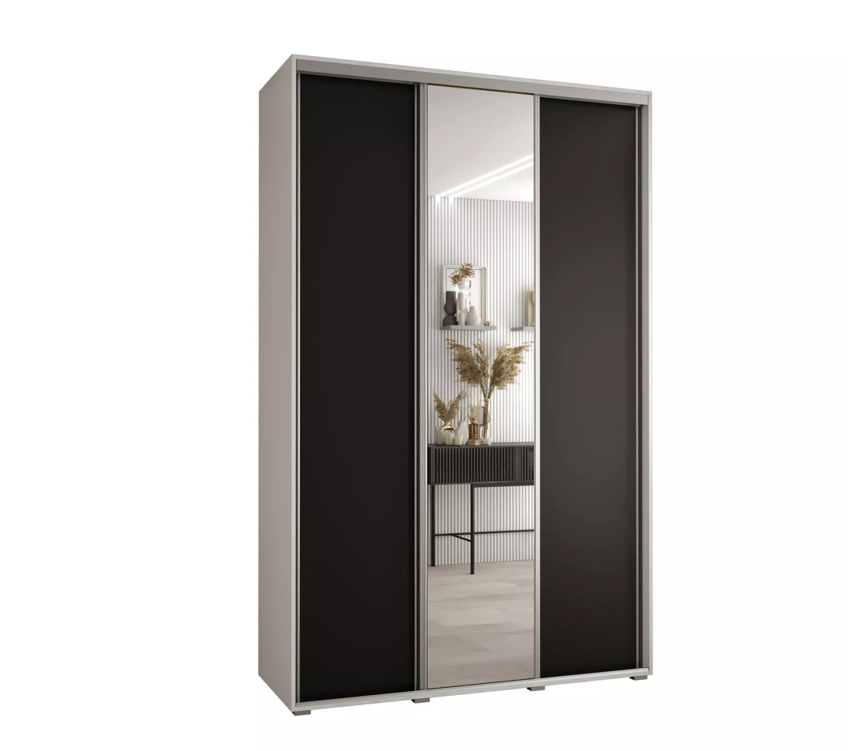 Šatní skříň YVONA 3 - 150/45 cm, bílá / černá / stříbrná
