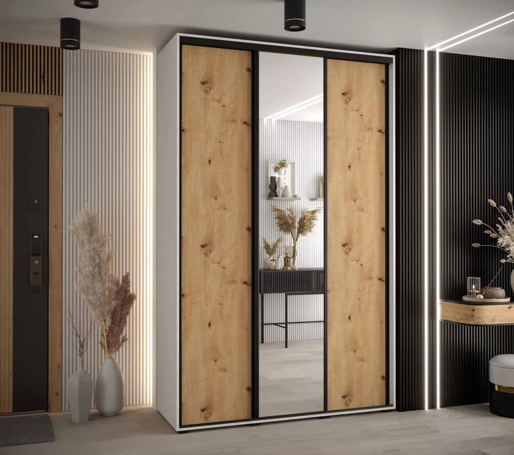 Šatní skříň YVONA 3 - 160/45 cm, bílá / dub artisan / černá
