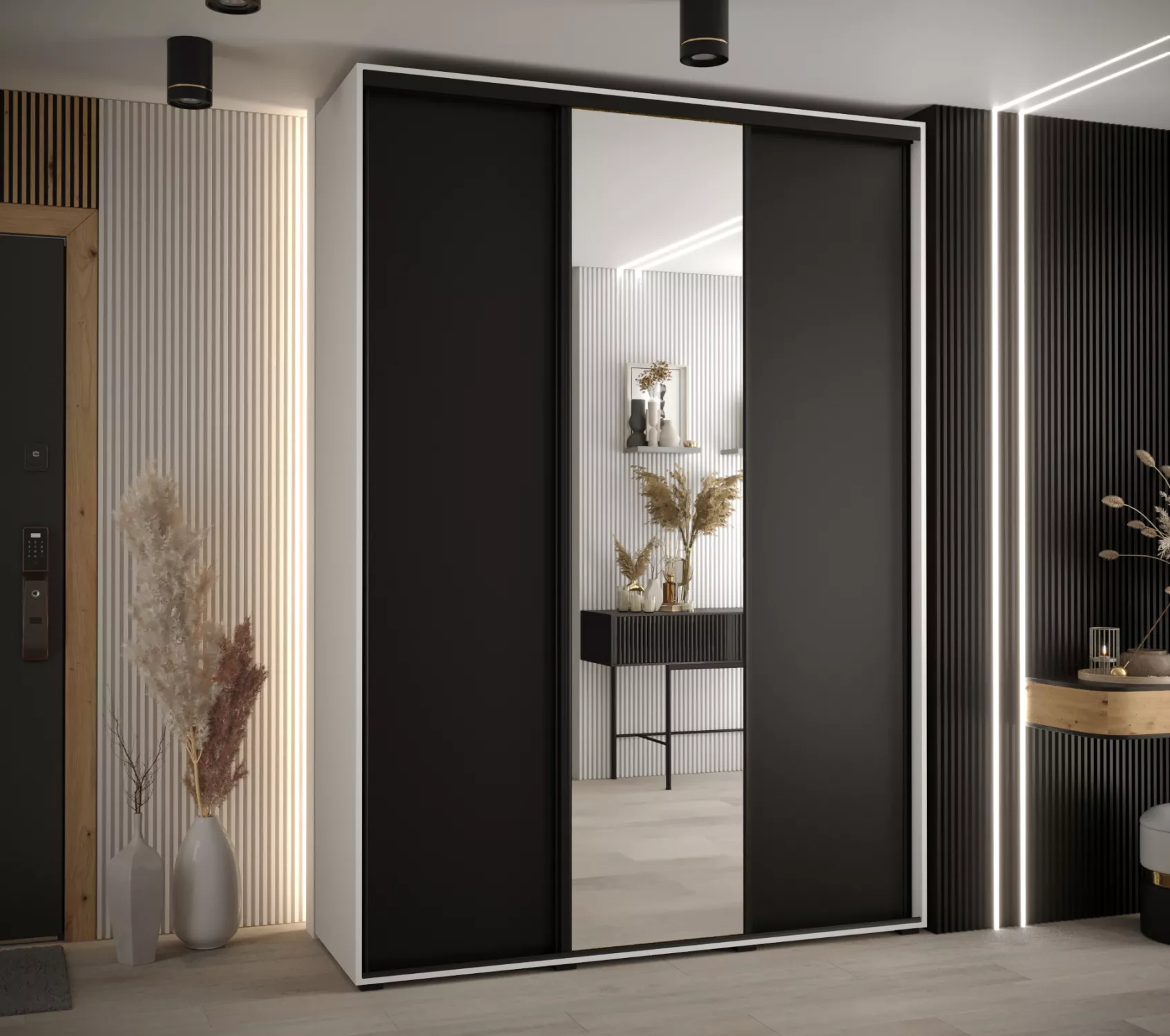 Šatní skříň YVONA 3 - 170/45 cm, bílá / černá / černá
