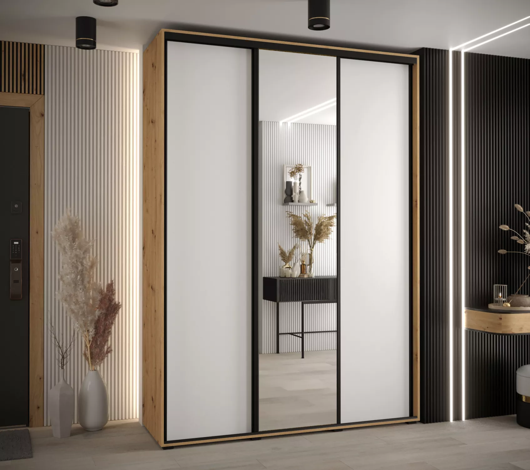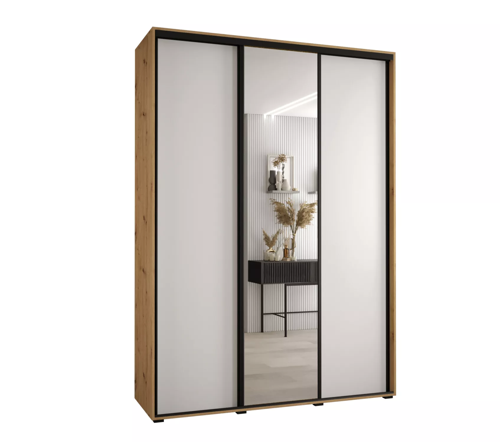 Šatní skříň YVONA 3 - 170/45 cm, dub artisan / bílá / černá