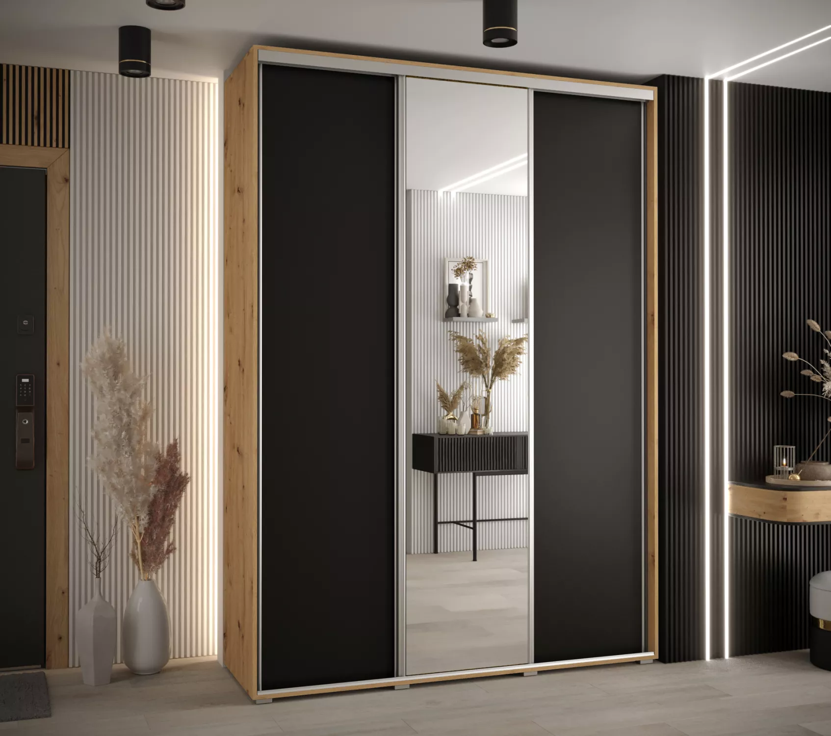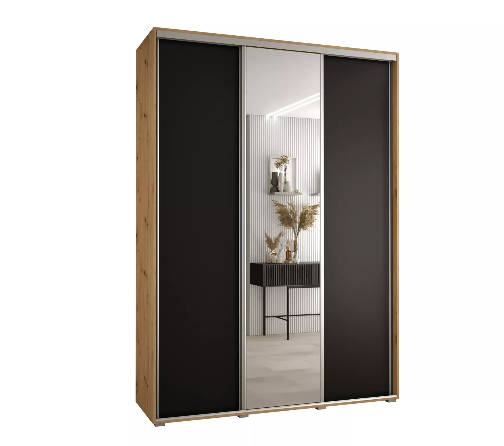 Šatní skříň YVONA 3 - 170/45 cm, dub artisan / černá / stříbrná