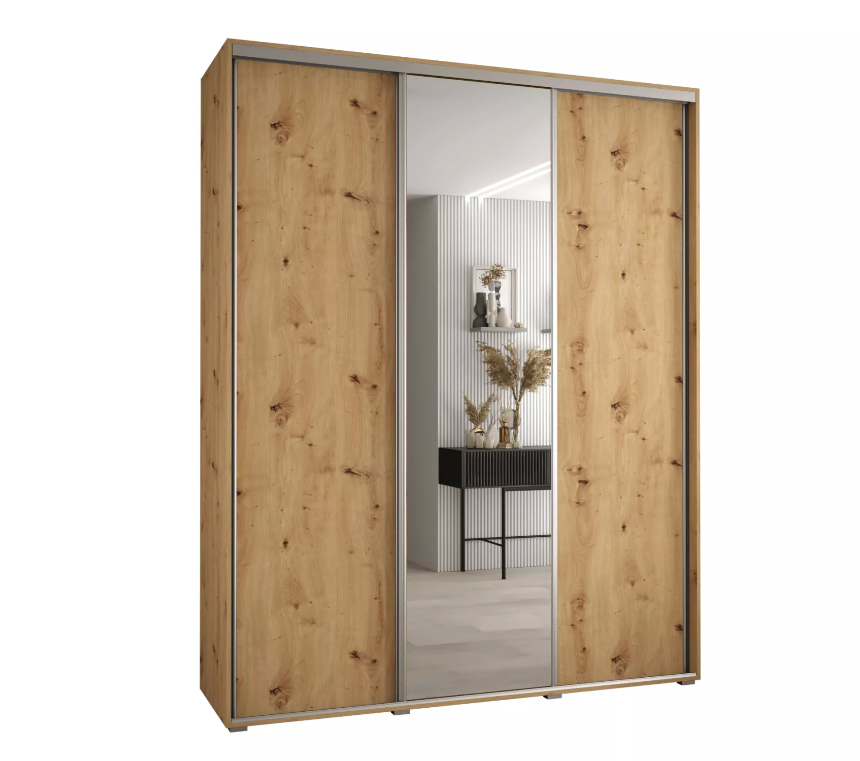 Šatní skříň YVONA 3 - 190/45 cm, dub artisan / stříbrná