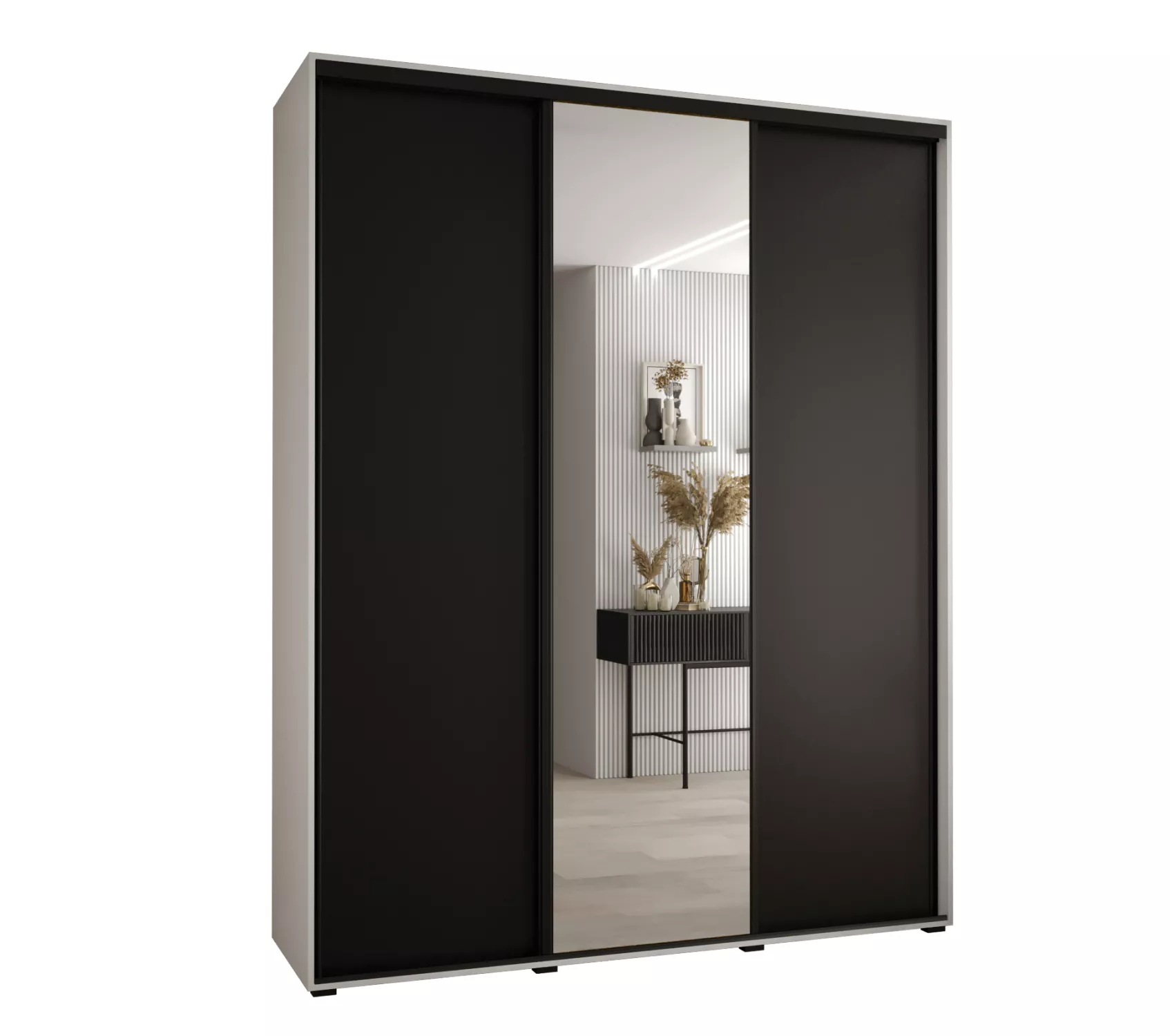 Šatní skříň YVONA 3 - 200/45 cm, bílá / černá / černá