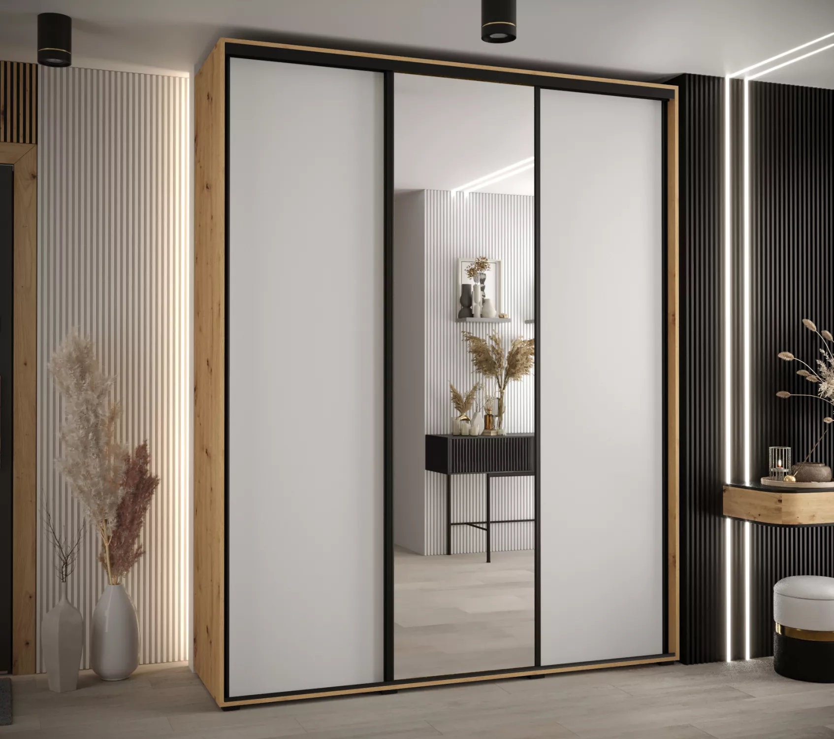 Šatní skříň YVONA 3 - 200/45 cm, dub artisan / bílá / černá