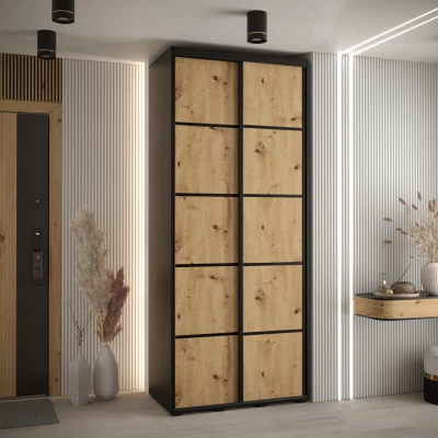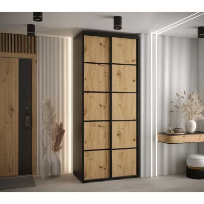 Šatní skříň YVONA 4 - 120/45 cm, černá / dub artisan / černá