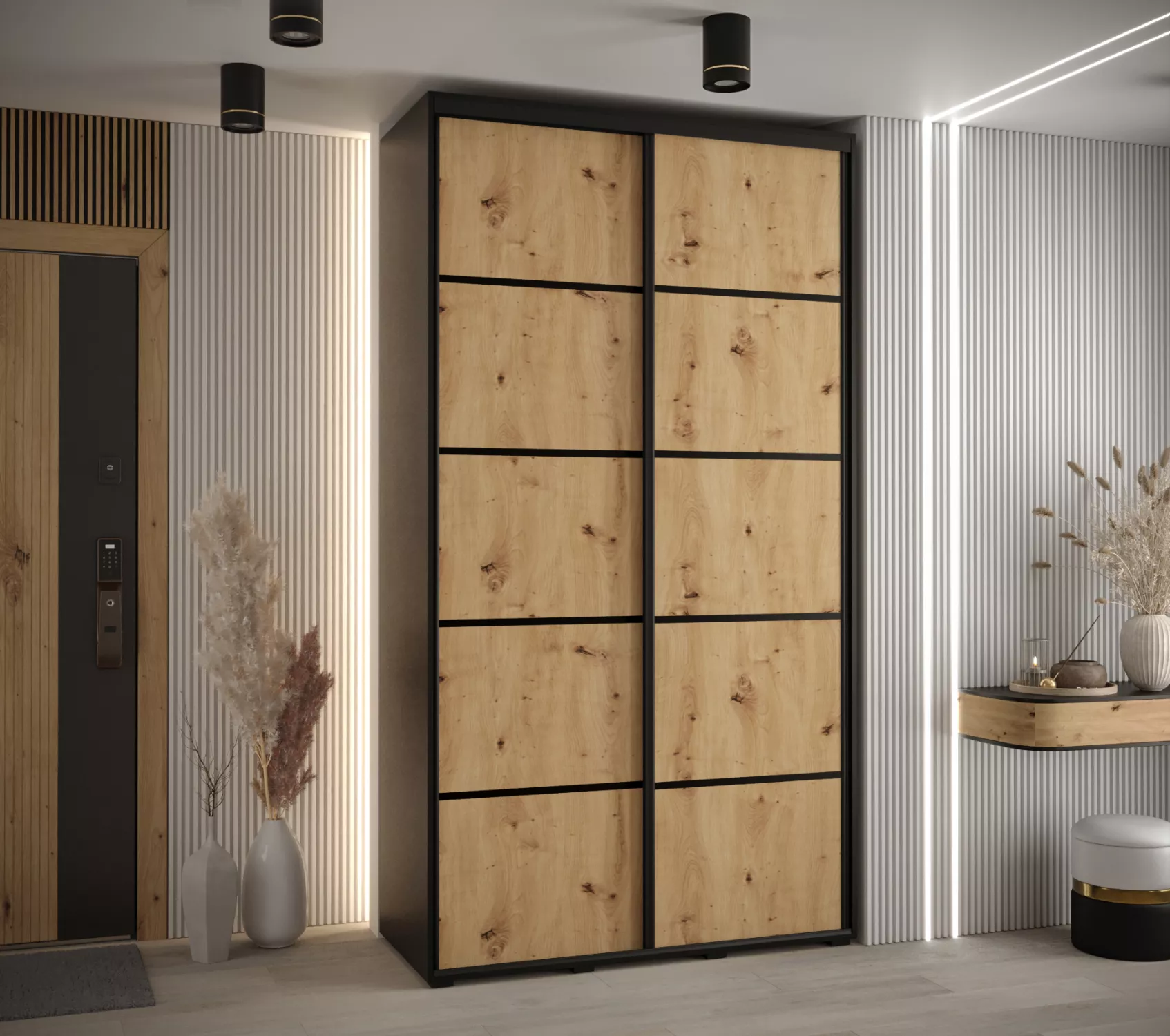 Šatní skříň YVONA 4 - 130/45 cm, černá / dub artisan / černá