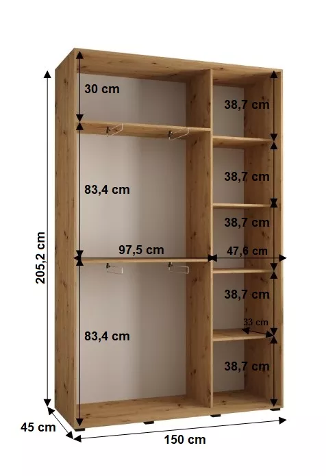 Šatní skříň YVONA upoutá pozornost každého, kdo hledá funkční a stylové řešení do své ložnice. Skříň je vybavena posuvnými dveřmi pro snadnější manipulaci.