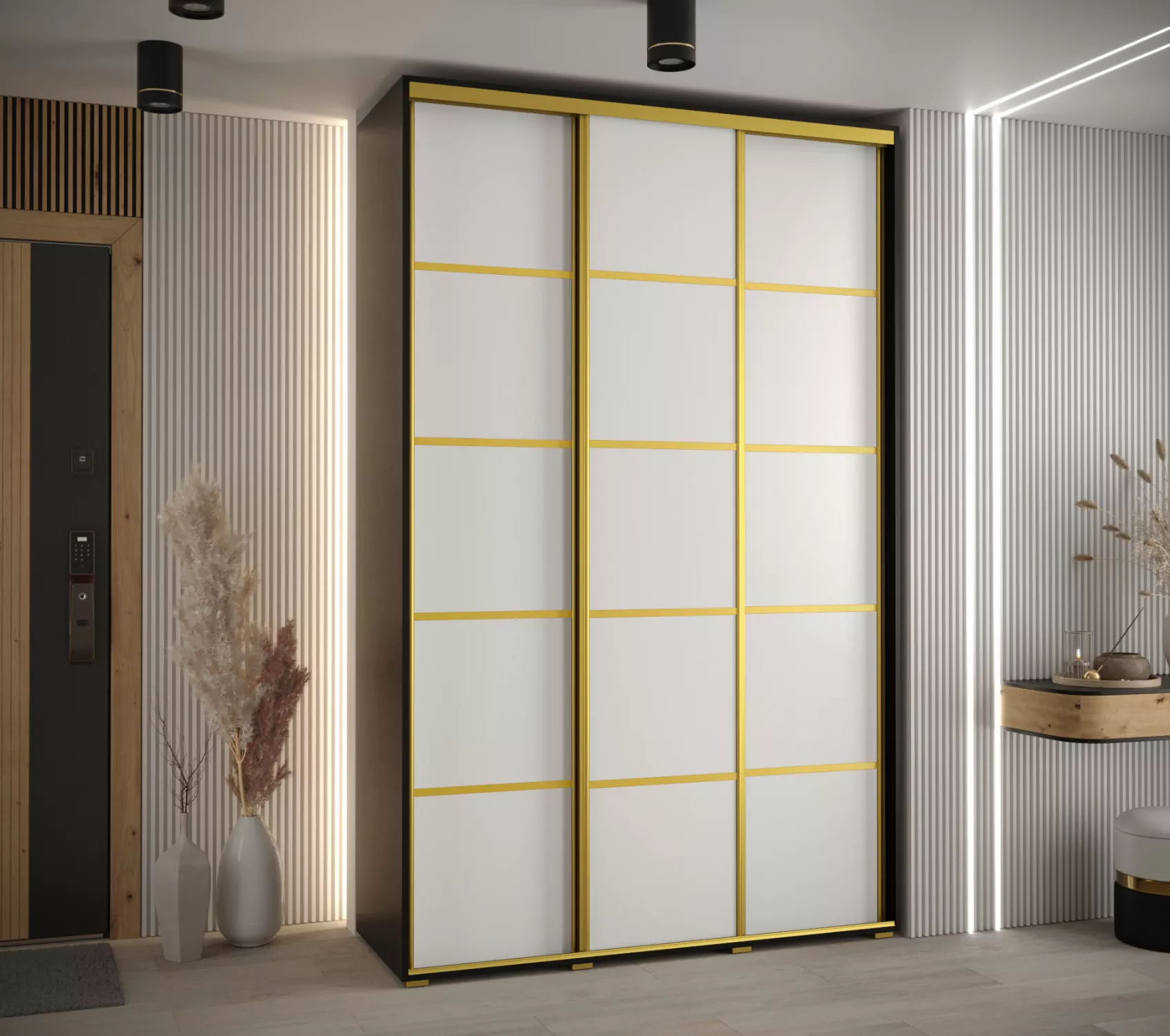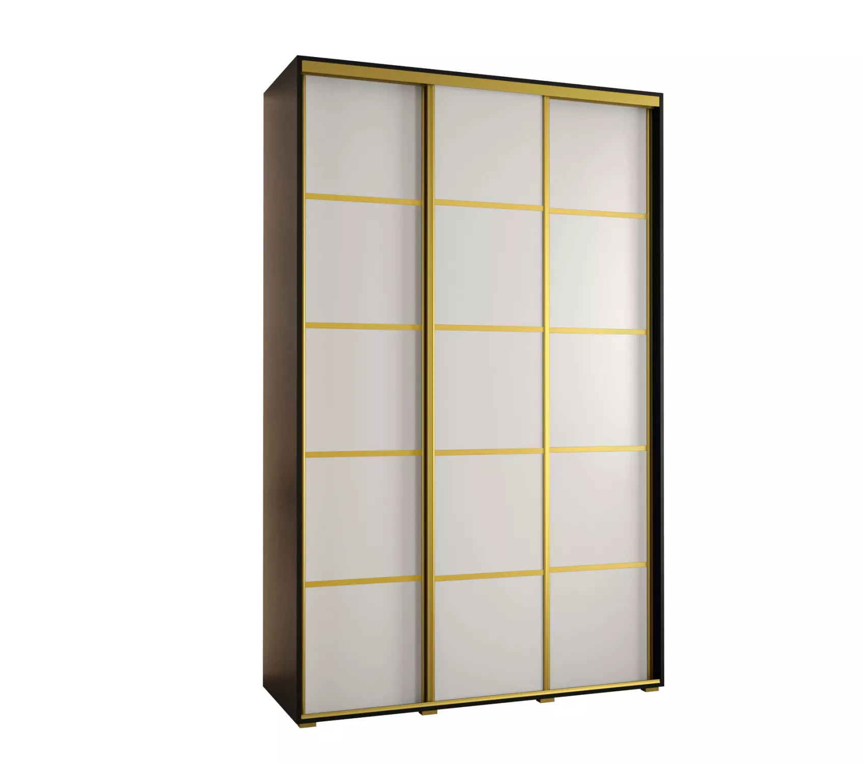 Šatní skříň YVONA 4 - 160/45 cm, černá / bílá / zlatá