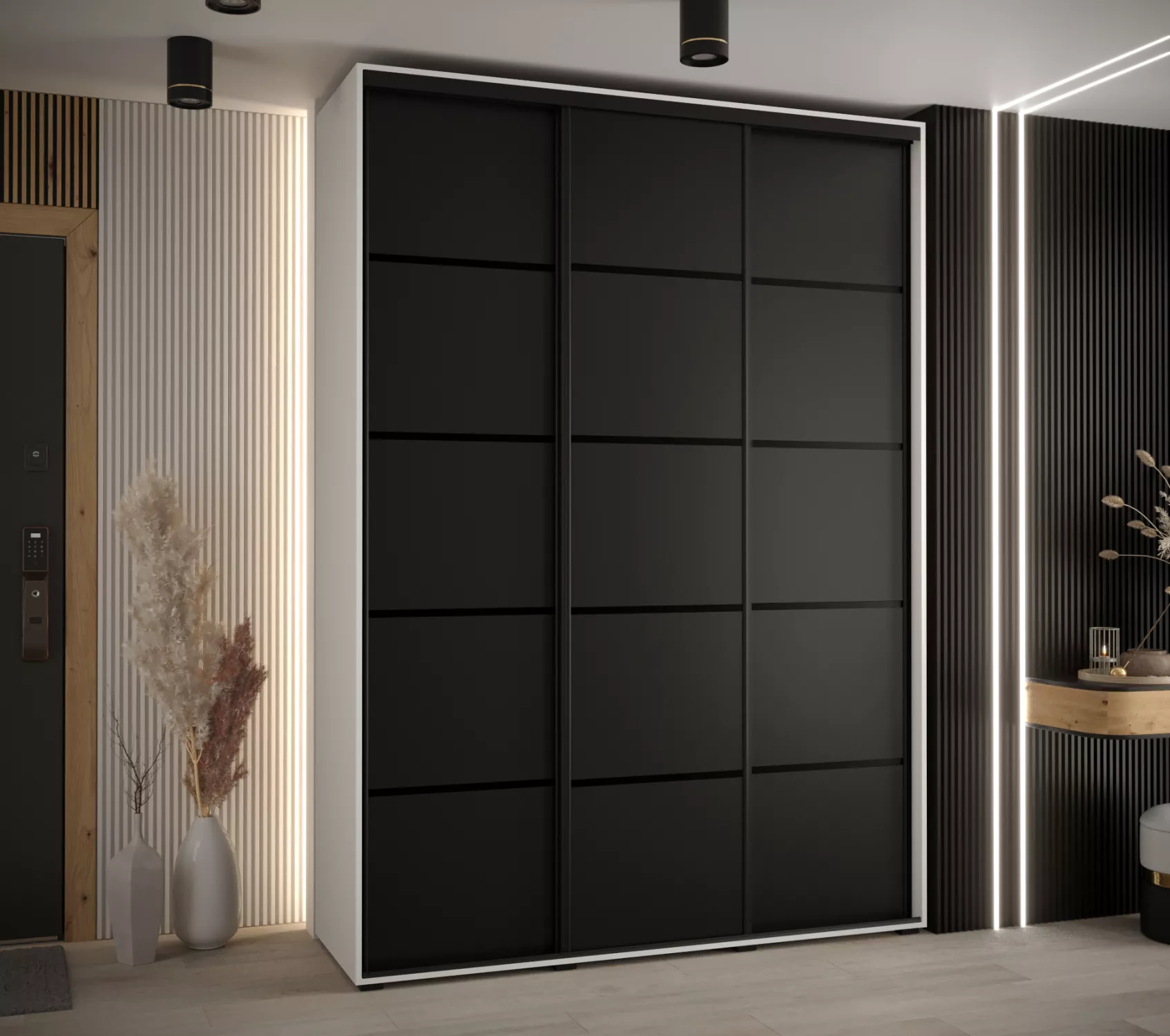 Šatní skříň YVONA 4 - 170/45 cm, bílá / černá / černá