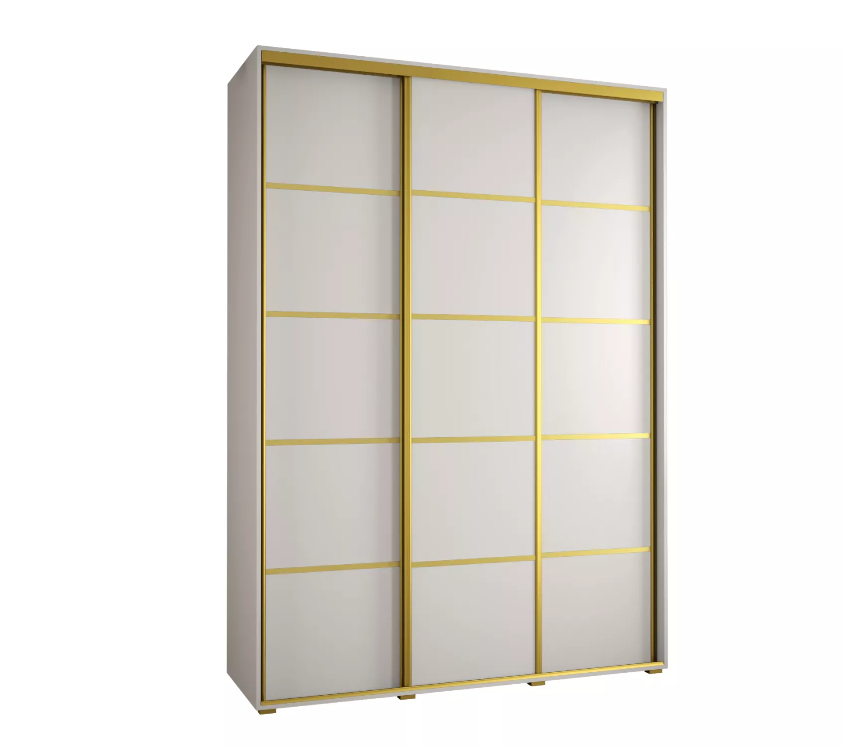 Šatní skříň YVONA 4 - 170/45 cm, bílá / zlatá