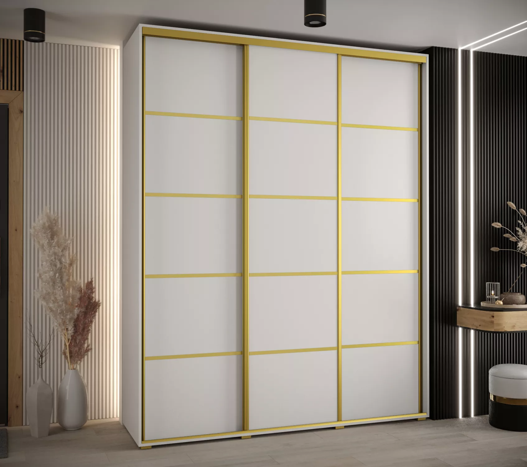 Šatní skříň YVONA 4 - 190/45 cm, bílá / zlatá