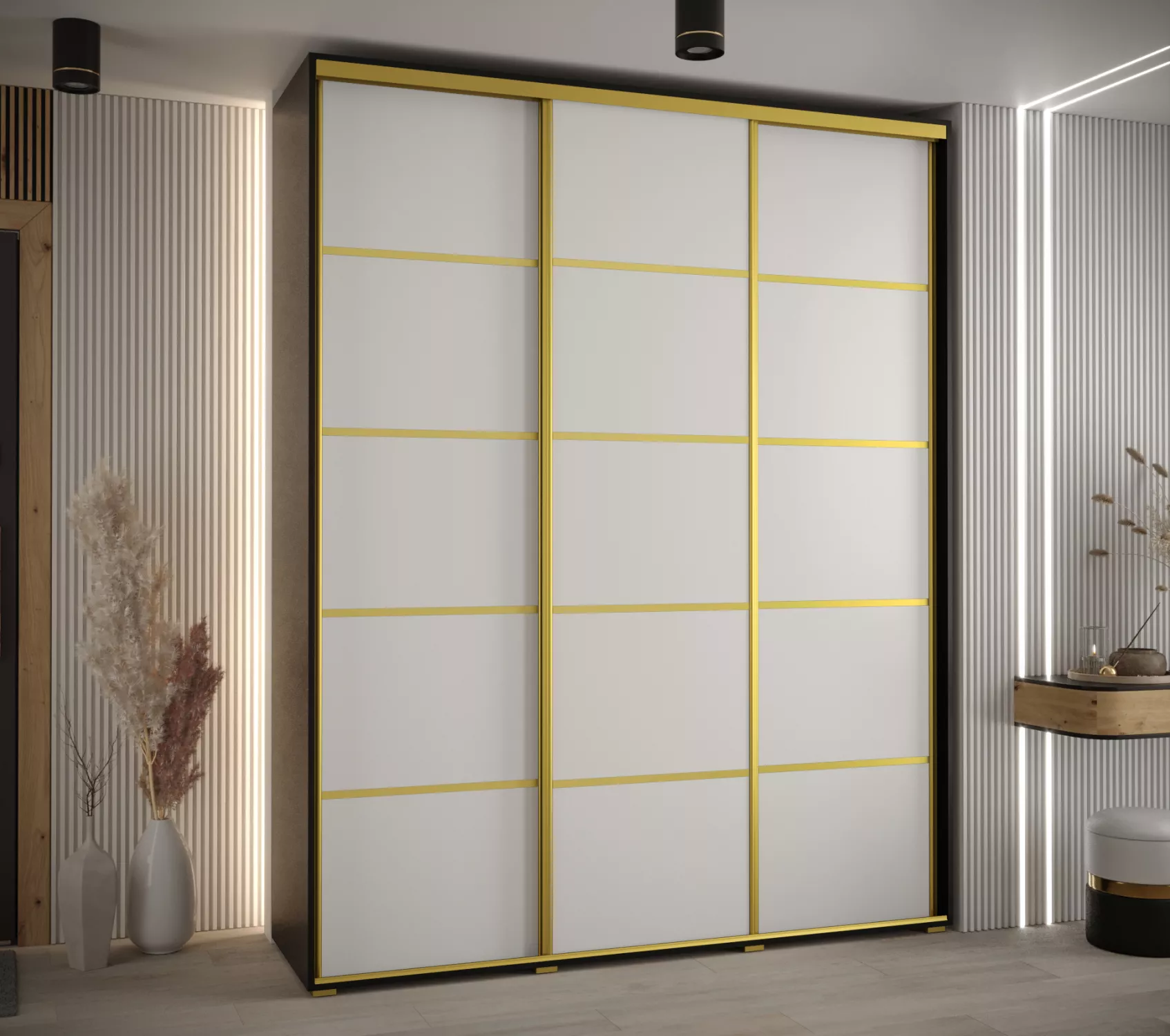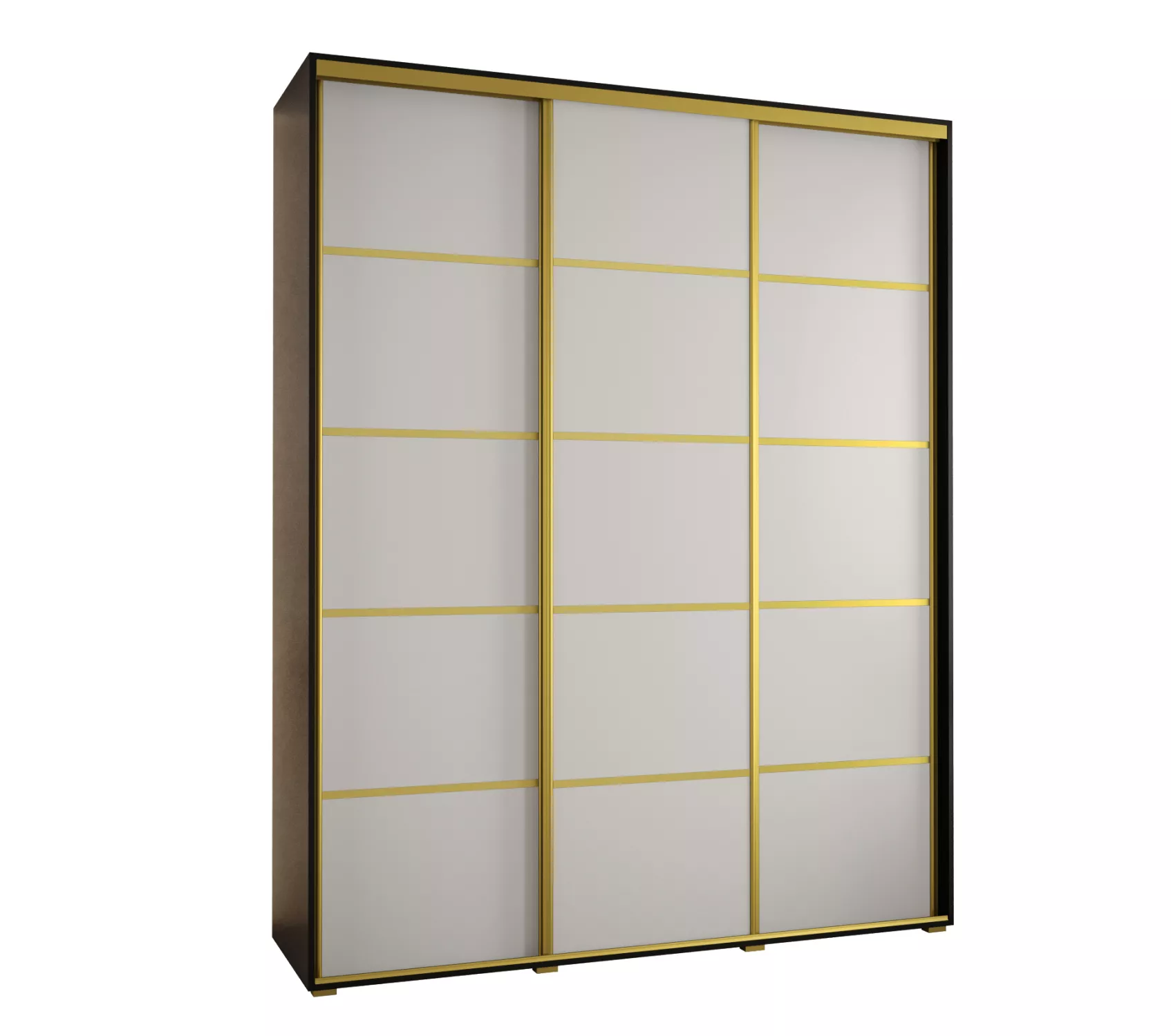Šatní skříň YVONA 4 - 190/45 cm, černá / bílá / zlatá