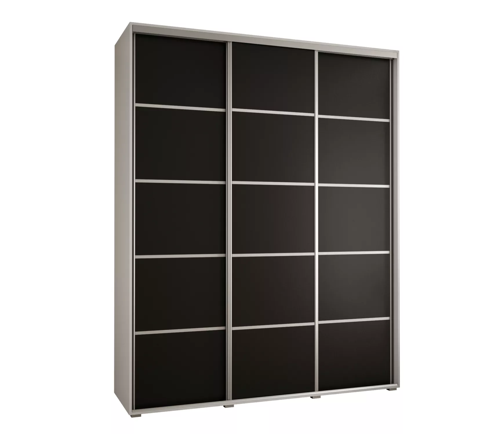 Šatní skříň YVONA 4 - 200/45 cm, bílá / černá / stříbrná