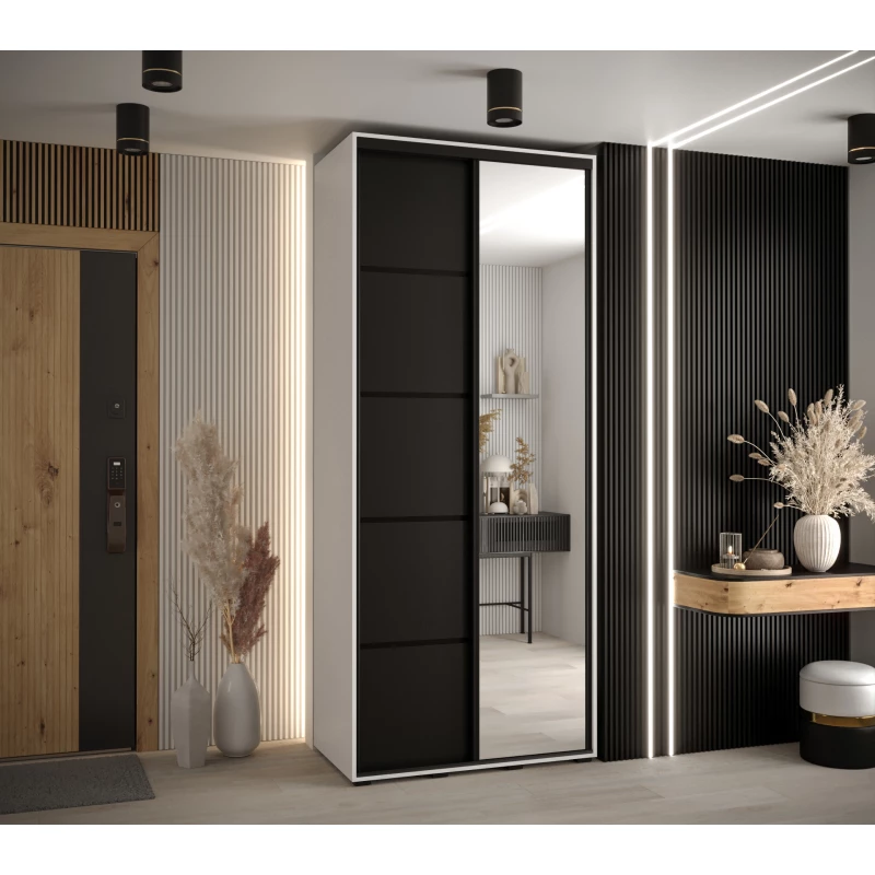 Šatní skříň YVONA 5 - 100/45 cm, bílá / černá / černá