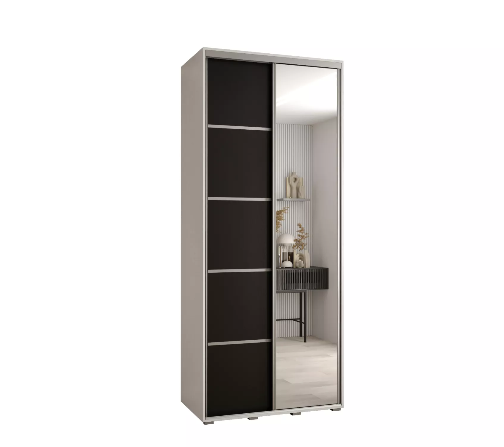 Šatní skříň YVONA 5 - 100/45 cm, bílá / černá / stříbrná