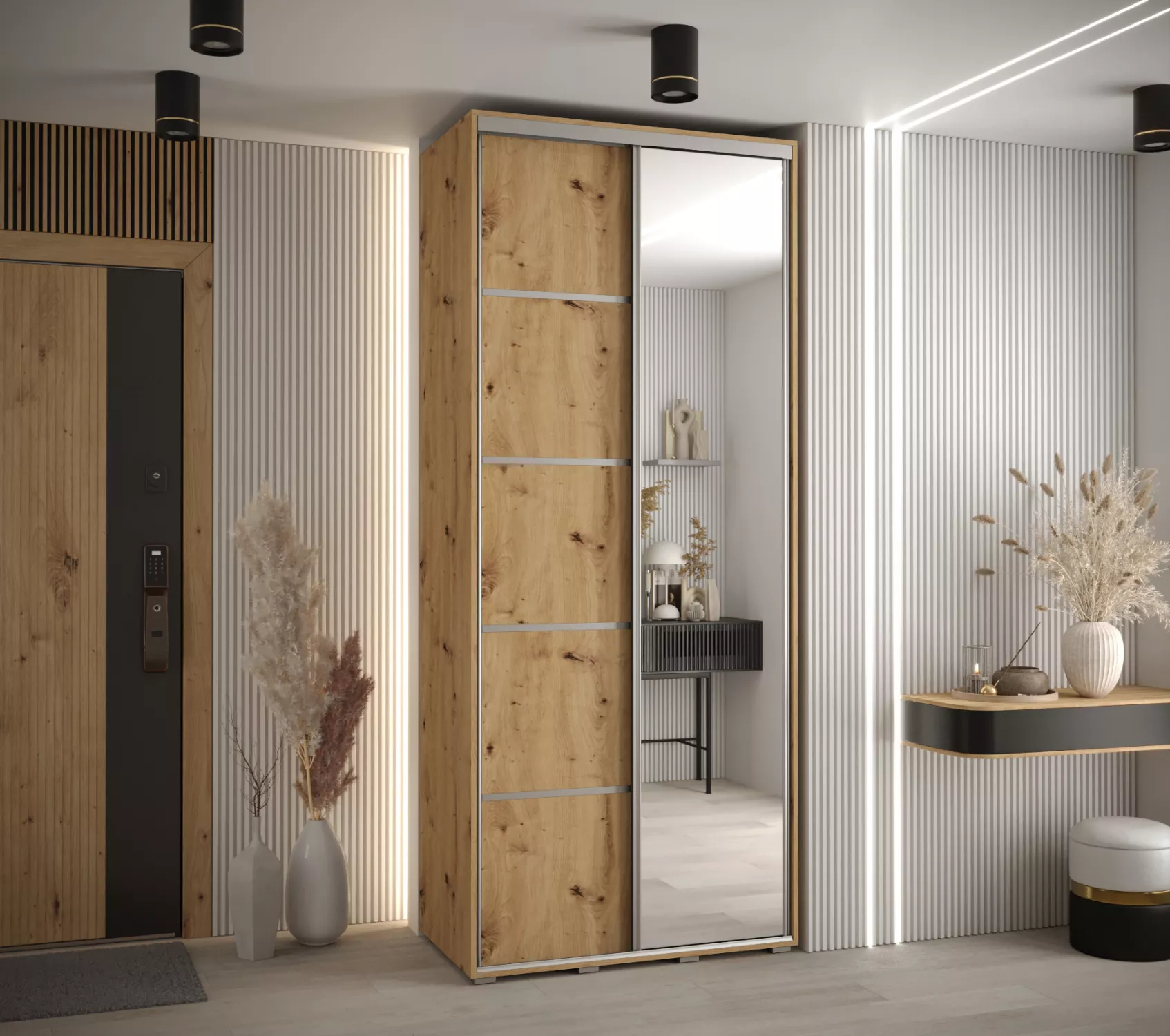 Šatní skříň YVONA 5 - 110/45 cm, dub artisan / stříbrná