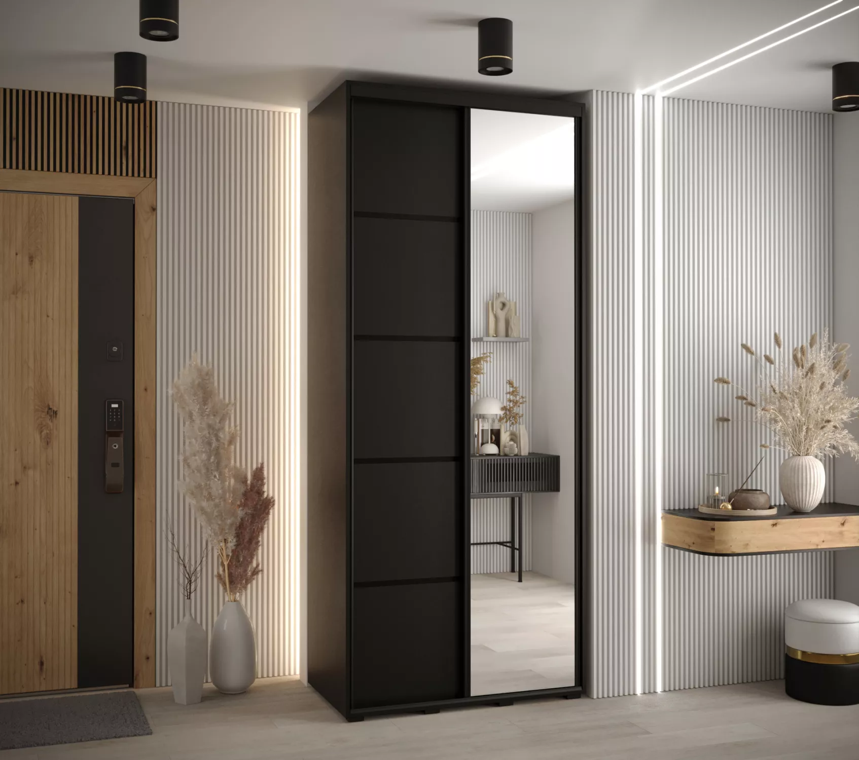 Šatní skříň YVONA 5 - 120/45 cm, černá / černá