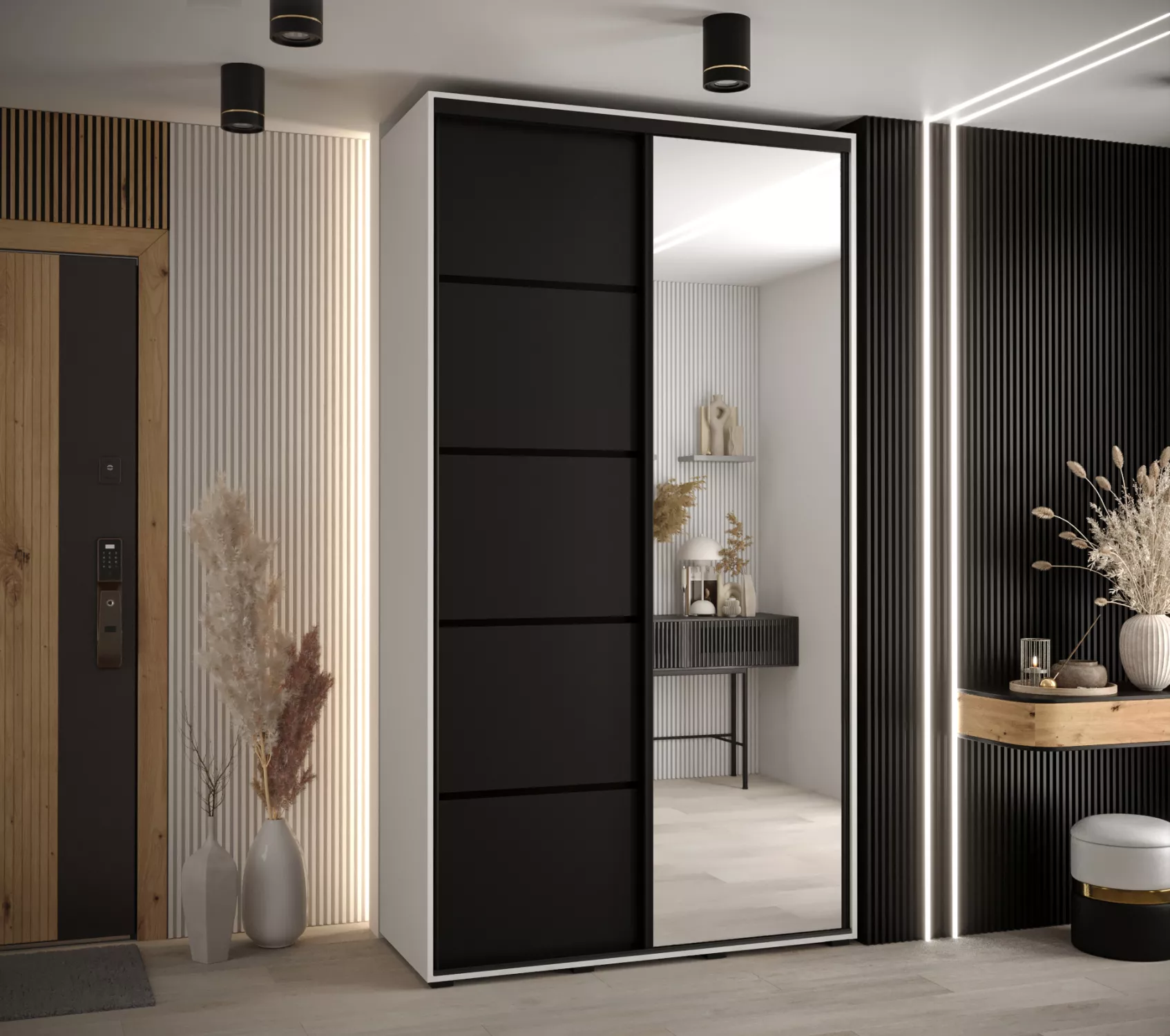 Šatní skříň YVONA 5 - 130/45 cm, bílá / černá / černá