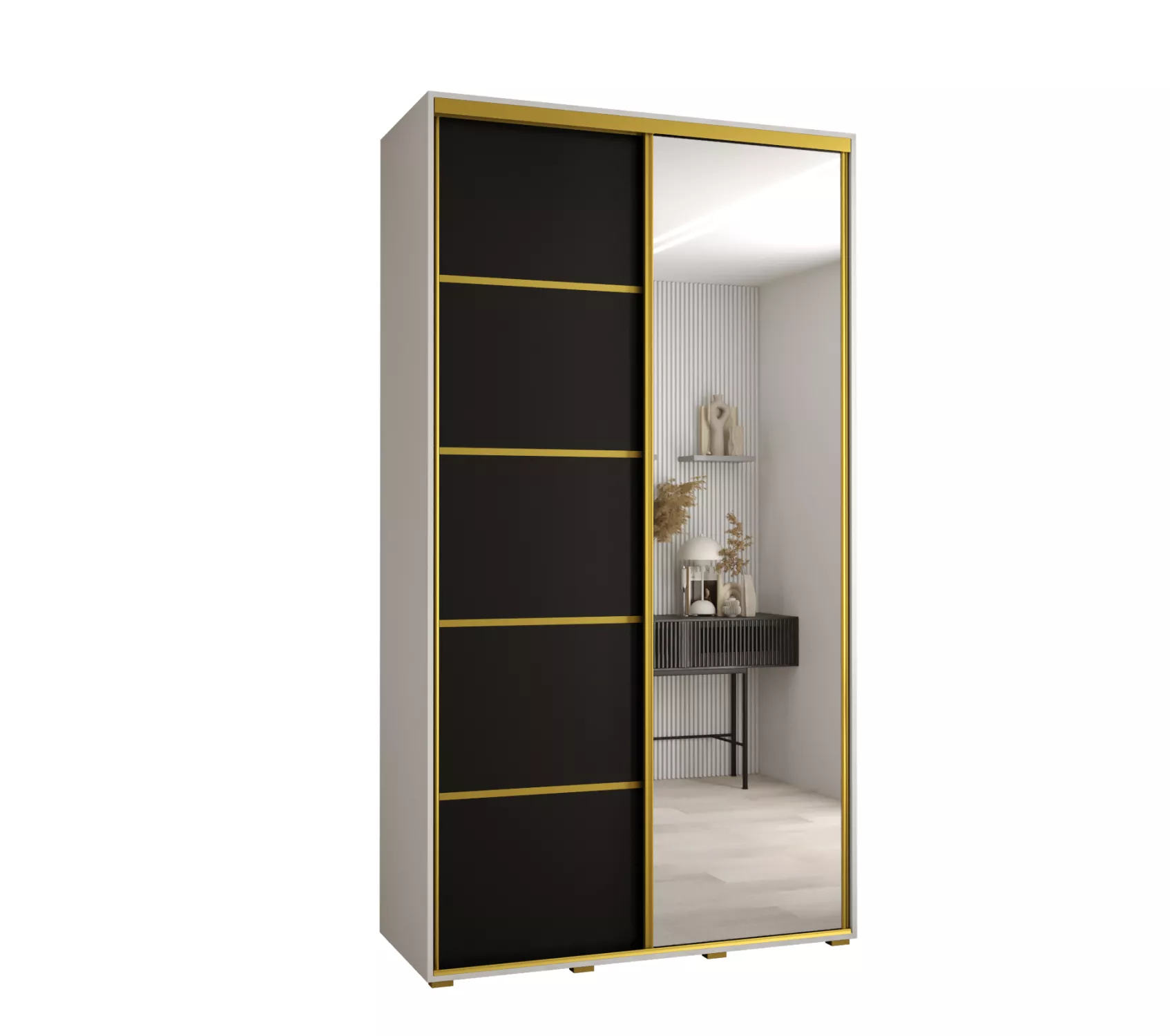 Šatní skříň YVONA 5 - 130/45 cm, bílá / černá / zlatá